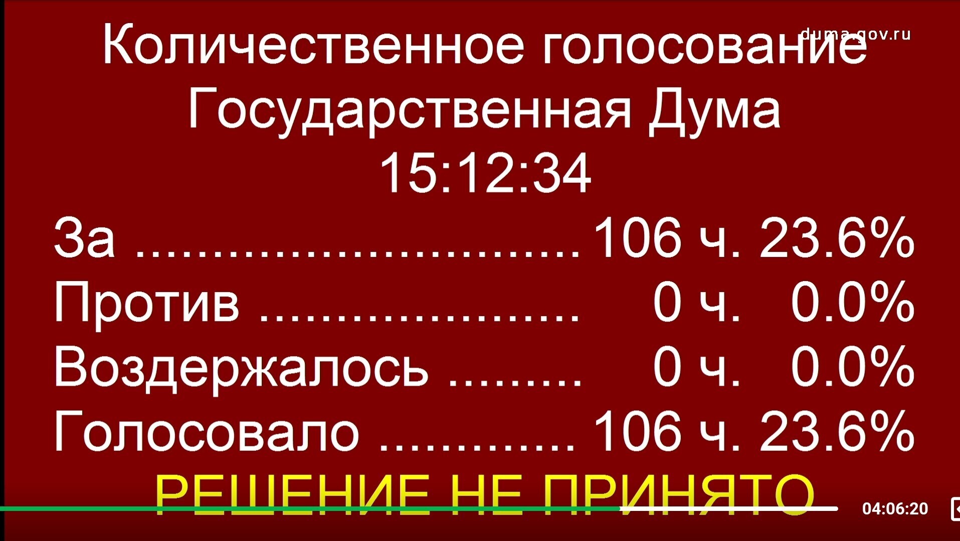 @BorisChernyshov, прокомментируйте, пожалуйста, как происходит такое. Депутаты правящей партии не явились на голосование или просто не стали голосовать?