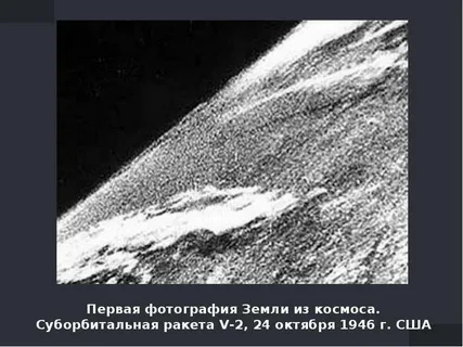 А самый первый снимок из космоса сделан уже американцами в 1946 году, с помощью всё той же ФАУ-2, хоть и модифицированной.