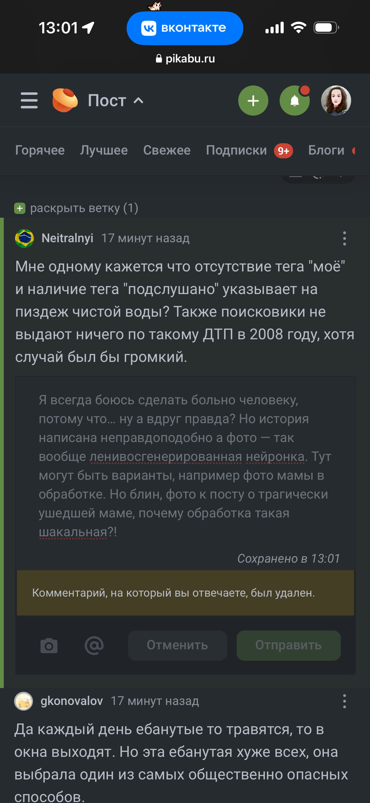 Отец продолжил изменять. Зато купил дом в станице рядом с нашей деревней, отучил маму на водительское. Мама узнала о продолжении романа, поехала в эту нахуйненужную станицу на последнем месяце беременности, набрала скорость и выехала на встречку в груженый щебнем большегруз.