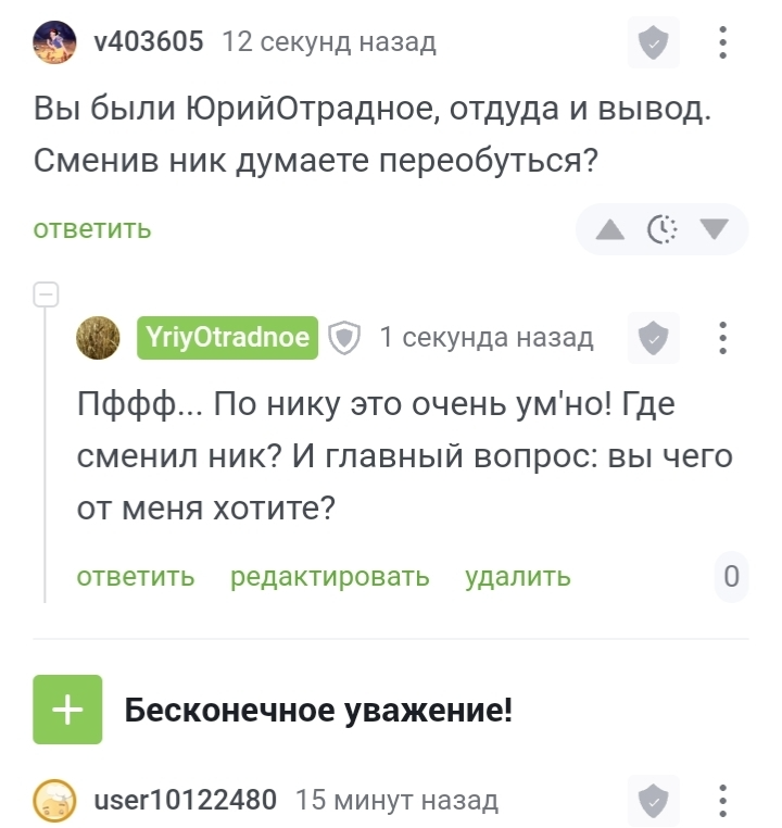 Очередная ложь, о смене ника! Причём, на мой вопрос ответа нет!