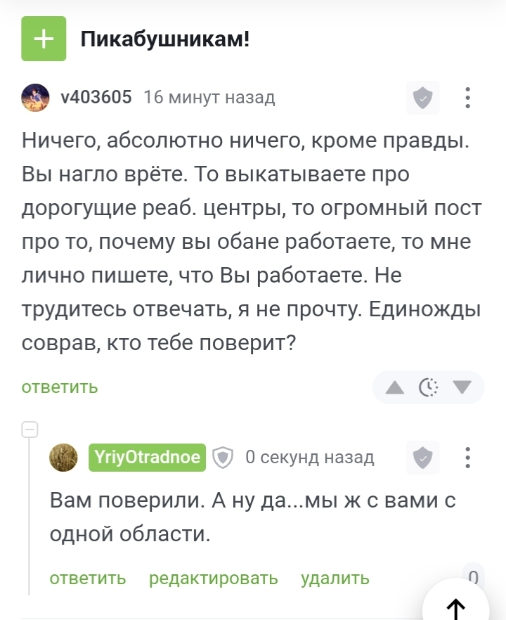 Никому не запрещено меня отправить в игнор, блокировать, дабы мои сообщения не досаждали той части мозга данных гениальных пикабутян, возбуждающих в той части, чтобы травить, троллить и кидать подлянки. Ответственно обещаю, что специально для постановки минусов на Пикабу, сломя голову, не кинусь, чего и вам желаю.