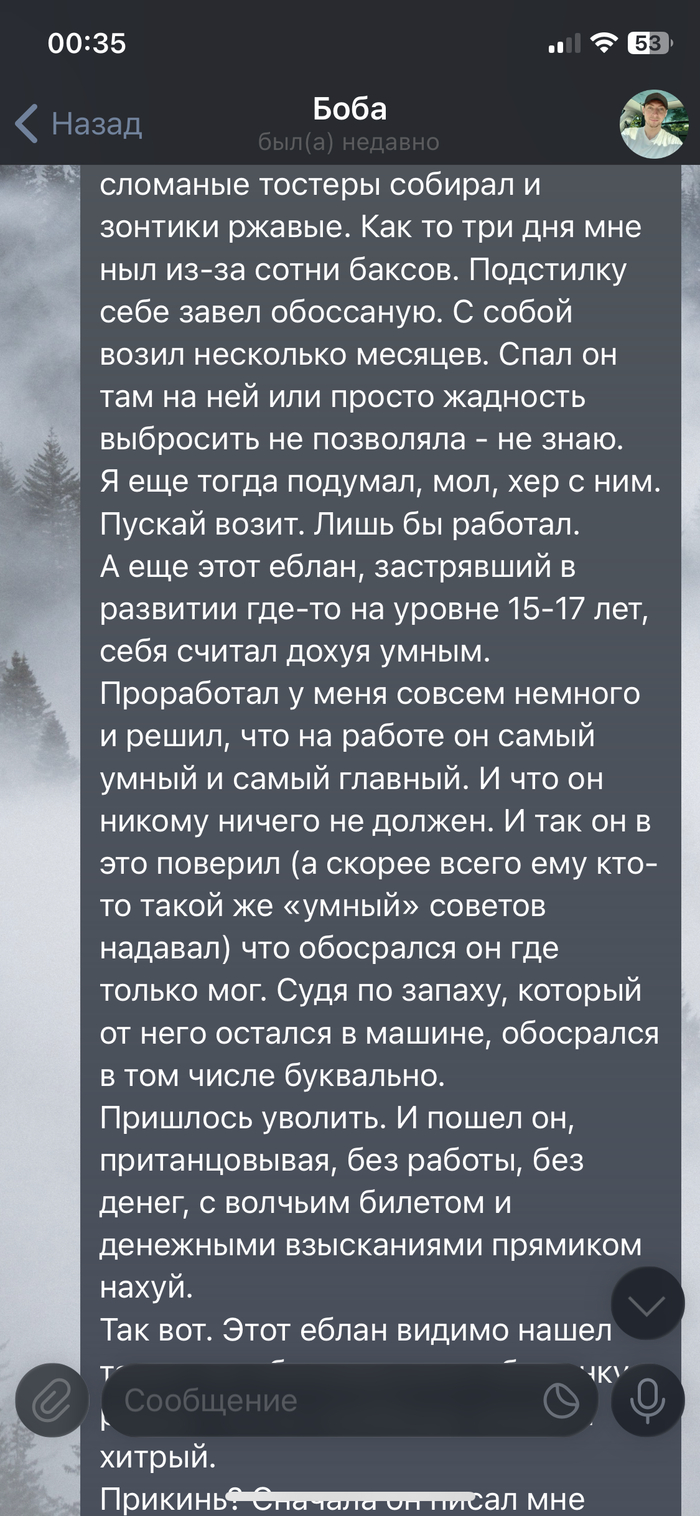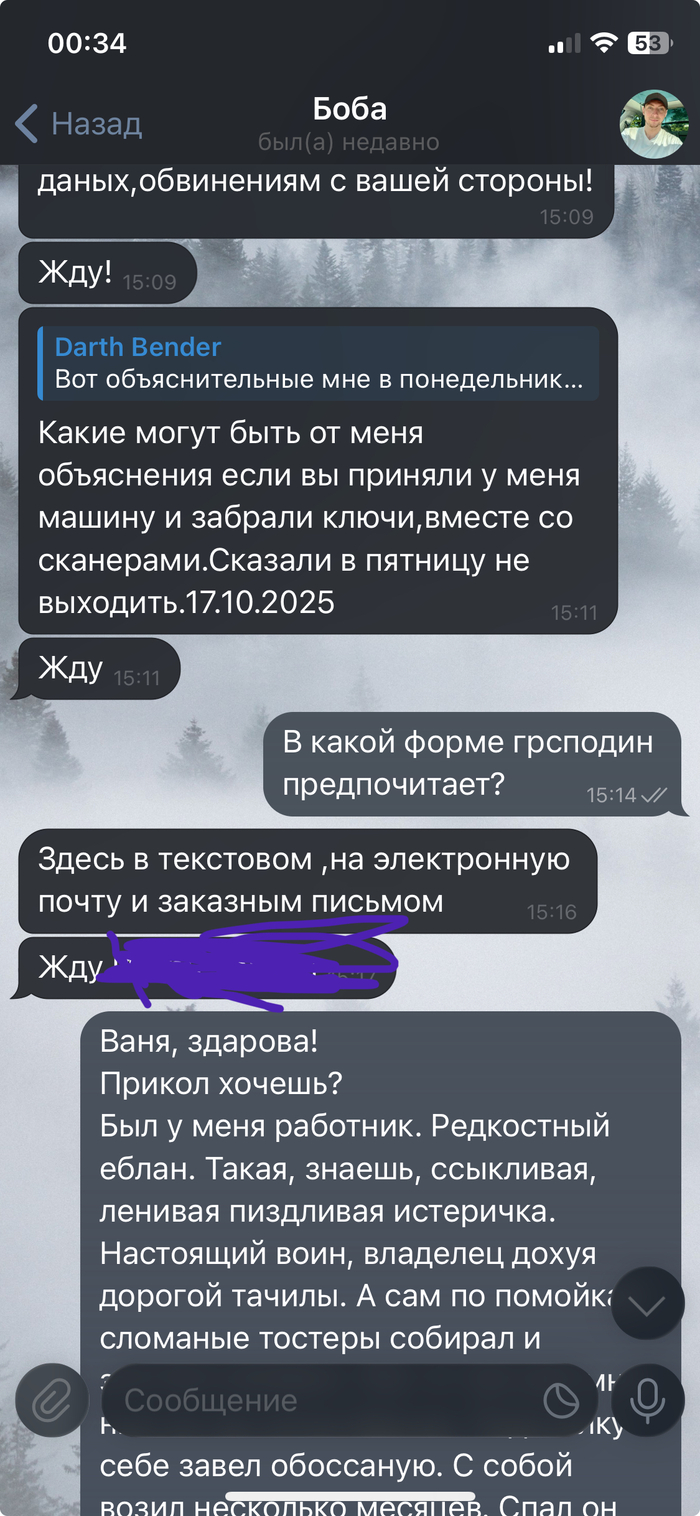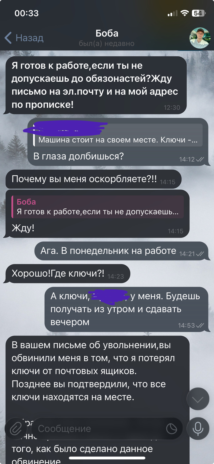 В очередной раз получив пиздюлей от Почты за то, что снова все сделано через жопу, устроил ревизию в машине и уволил выблядка. Уволил по закону. Вот предоставляю переписку с работничком.