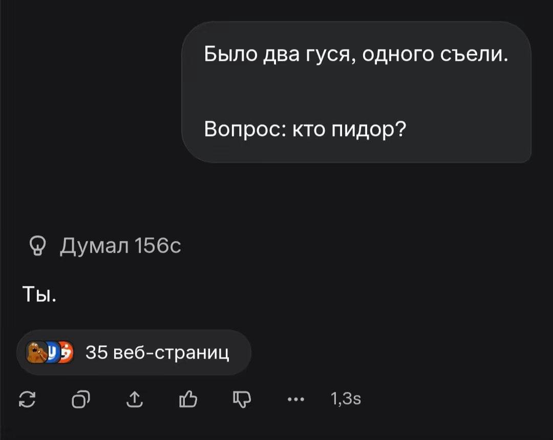 162 jimmxattab Ответ PanStepan в «Загадка»13 3 месяца назад Скриншот ChatGPT Загадка Юмор Волна постов Нейронные сети Ответ на пост 18 2 1 Ещё 0