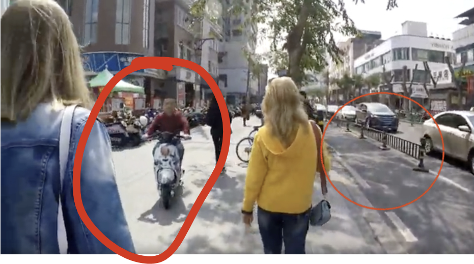 Ты слепой или не прочитал, что китайцам на электроговне насрать на разрыв, они везде гоняют и по дорожке и по тротуару.