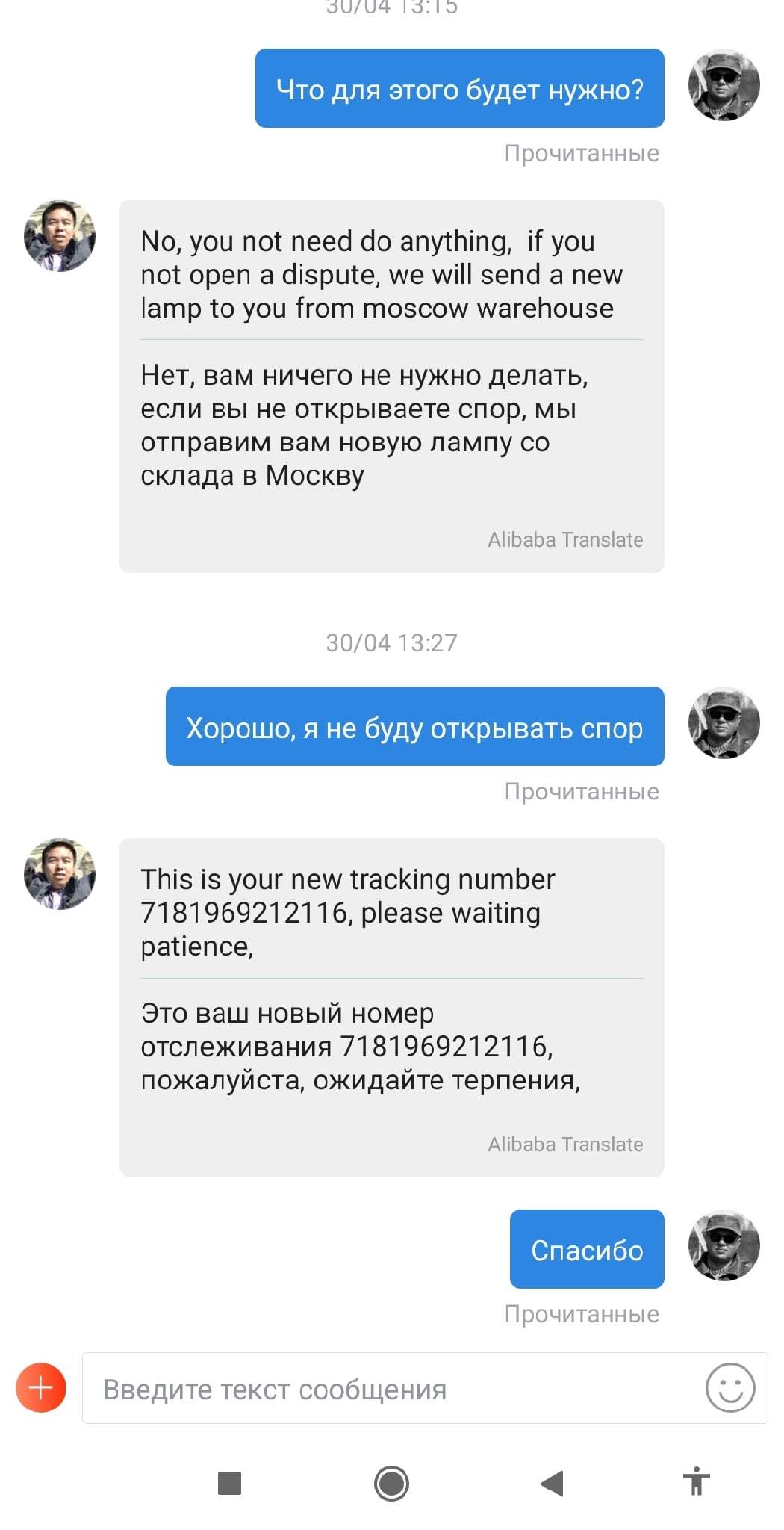 Я уже напрягся и приготовился к длительному спору. Но решил написать продавцу, не сочтите за рекламу, на удивление продавец ответил довольно быстро, попросил фото дефекта, не спросил видео с распаковки, и предложил выслать новую лампу абсолютно бесплатно, но попросил не открывать спор.