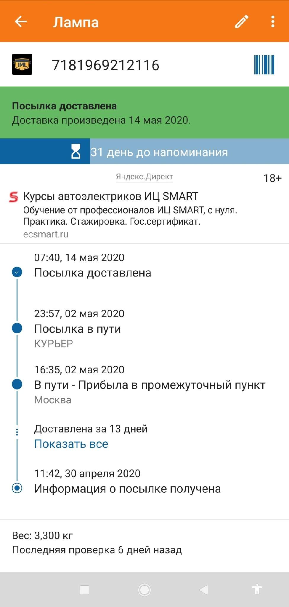 Я не сильно в это поверил, но до окончания подачи спора было еще более двадцати дней, поэтому согласился. Чуть позже продавец скинул трек-номер отправления, причем отправлял со склада в москве.