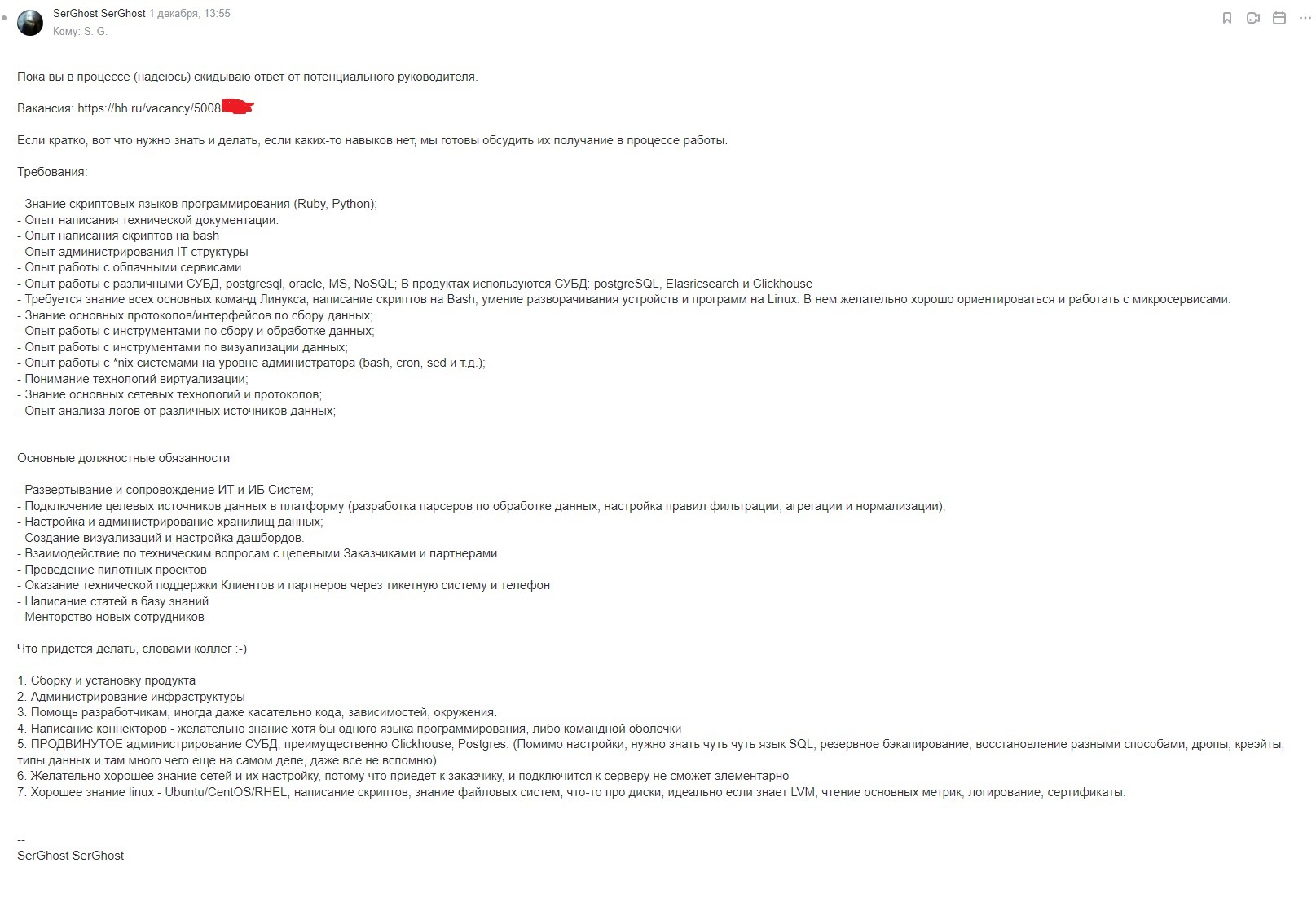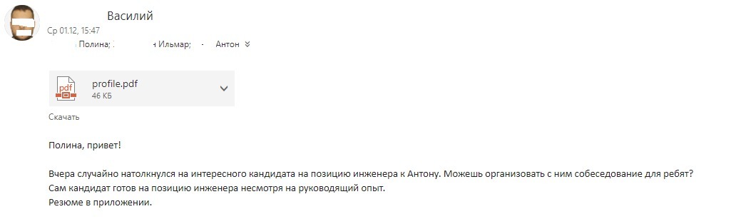Тогда эти письма в студию (в т.ч. и Вашу переписку с кадрами по потенциальному кандидату).