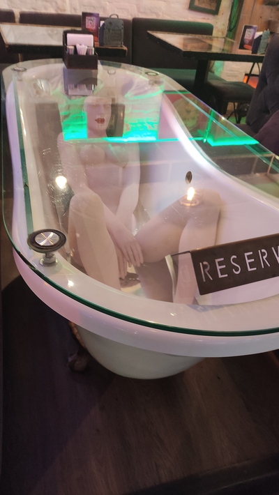 Осенью гулял в Питере, зашёл покушать в заведение "Саквояж беременной шпионки" ))