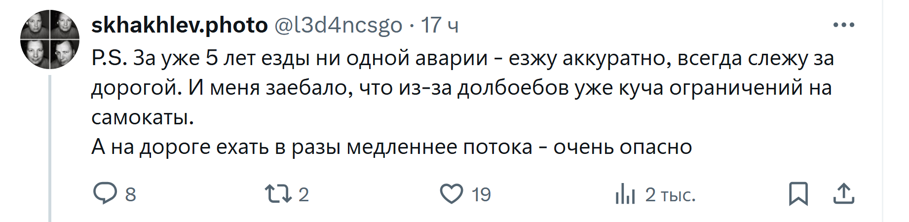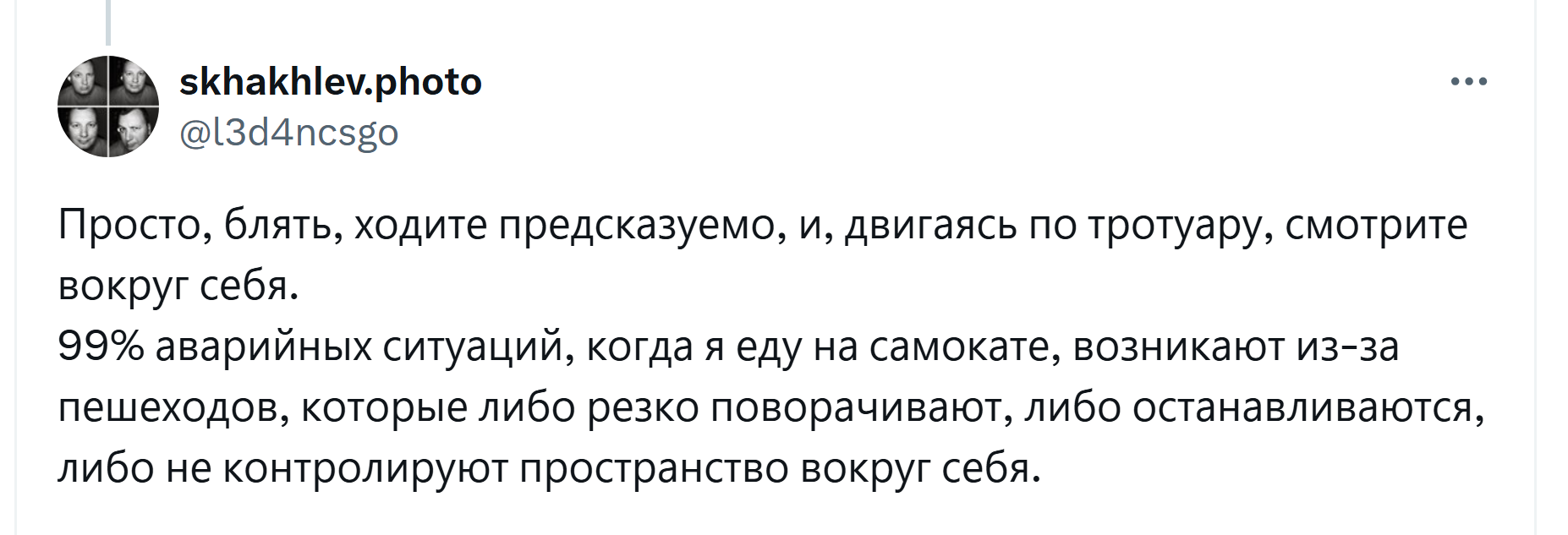 5 snarky2000 Ответ user9182828 в «Второй пошел!»27 6 месяцев назад вы не понимаете - у них таки пешеходы сами виноваты. аккуратней надо. Электросамокат Ответ на пост Волна постов Мат Ещё 0