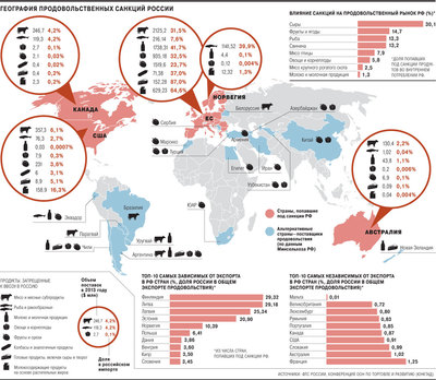 Общий объем импорта продовольствия в Россию за 2013 год - 43 миллиарда (по данным России).