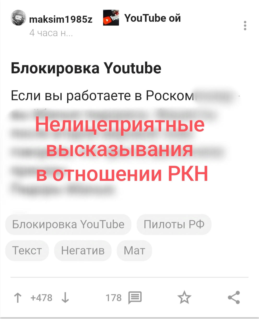 1029 Lobotryasik Ответочка 1 год назад Пост про негатив в отношении РКН удалили по требованию РКН [моё] Роскомнадзор Негатив Скриншот Длиннопост Посты на Пикабу Удаление постов на Пикабу 64 12 6 5 Ещё 0