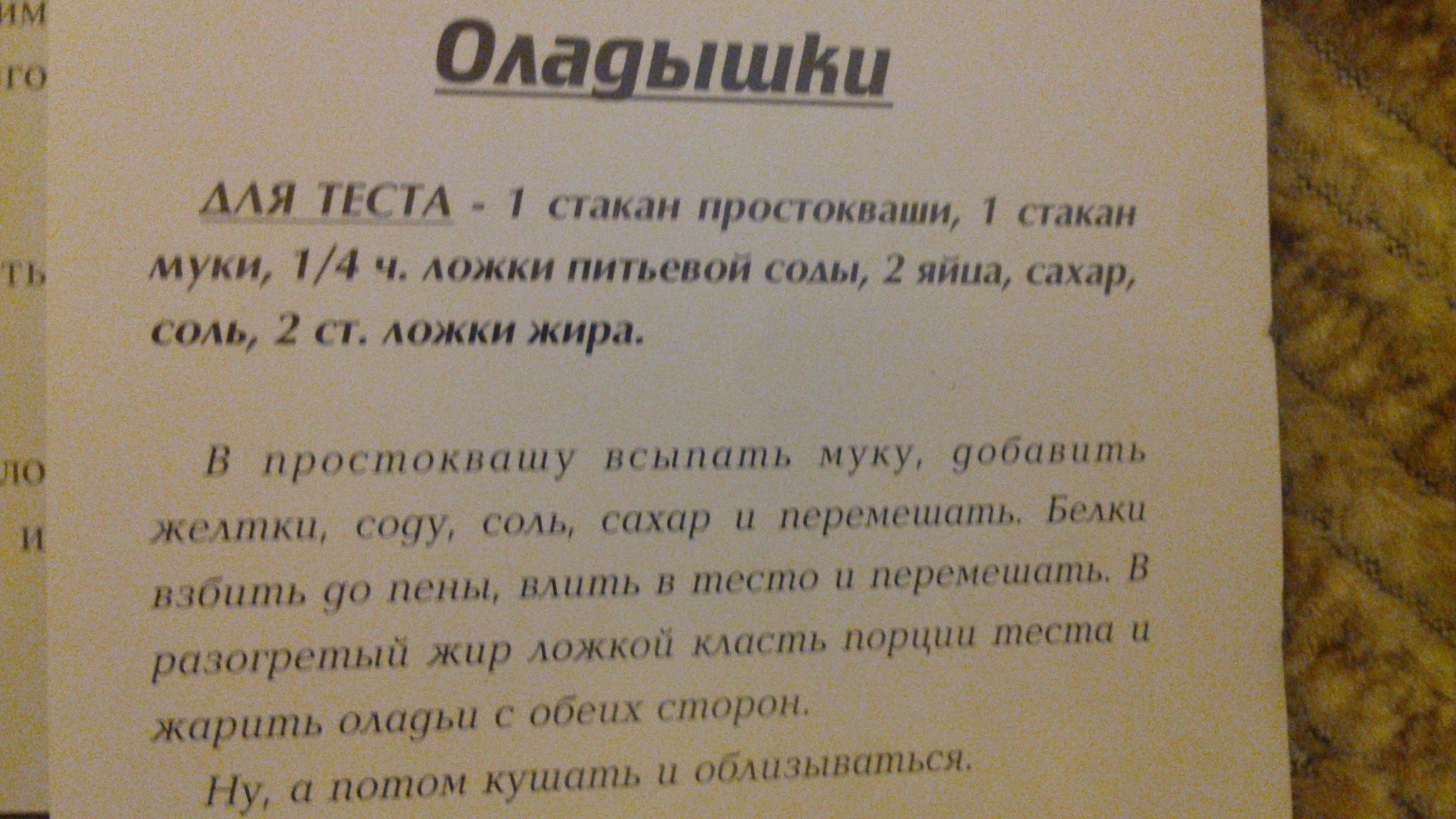 ага, на кефире) Еще здесь же на пикабу видел пост-совет о том, что чтобы оладьи получились пышными после добавления соды тесто не трогать. Очень пригодился этот совет