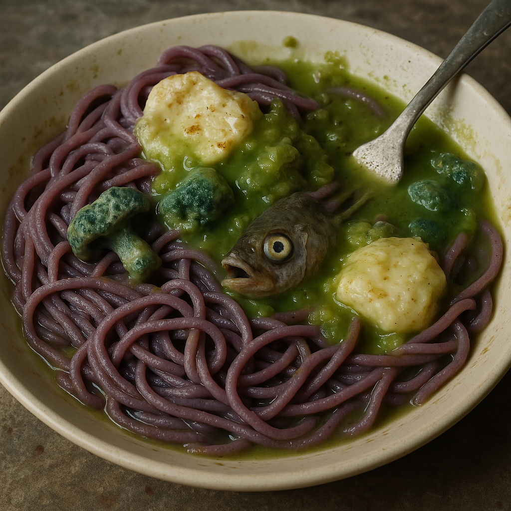 3 Vagabond1 Отвратительно выглядящая еда от ChatGPT 7 месяцев назад [моё] Арты нейросетей Картинки Искусственный интеллект ChatGPT Чат-бот Еда Длиннопост Ещё 0