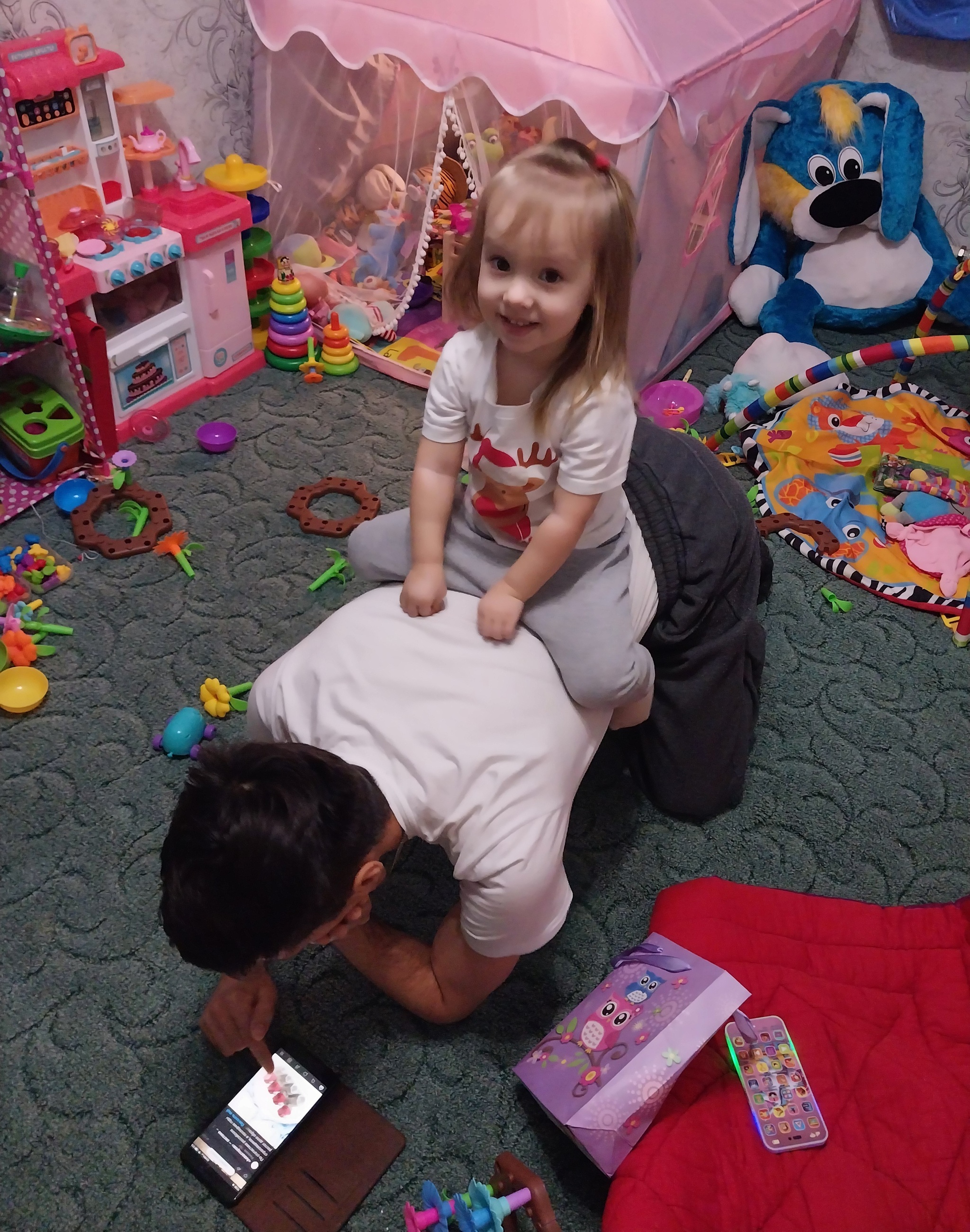 Как же я рада за эту маленькую девочку, отец которой оторвался от своих дел (да пусть даже от дивана или приставки) и пришел поиграть с ней, терпеливо сидит на стульчике, пока она возится с посудкой. Муж совершенно не хотел играть с нашей дочкой, его больше раздражали дочкины просьбы с ней проводить время, ведь он хотел почитать или телик смотреть. Стоит ли говорить, что дочь выросла и не особо стремится проводить время с папой