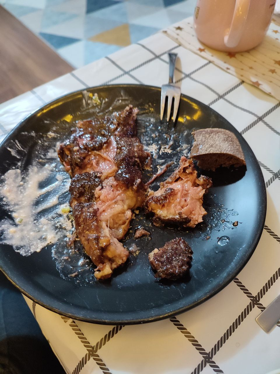 Около 100г кость и 108г жира на 400г общего веса. Хуже всего то, что и мясо само по большей части было очень жирное и отдавало опять же тушёнкой. Я в своей жизни ел не очень много рёбер, т.к. удовольствие дорогое, но несколько походов во фрайдес и франк бай баста говорили, что это полный провал, ведь там за почти те же деньги я получил намного больше вкусного мяса.