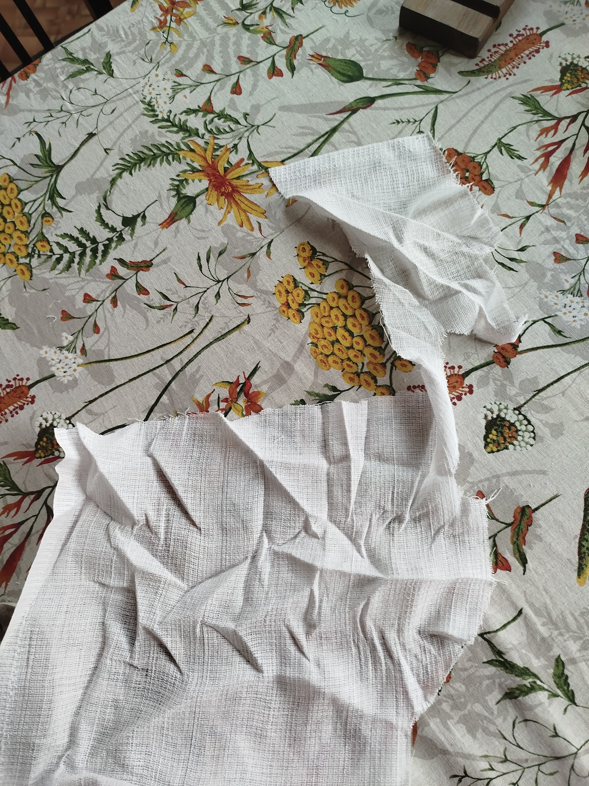Получается, что вместо салфеток 35 на 35см, у меня будут отщепенцы 30 на 30 из двойной ткани (одинарная просто как марля, сами видите на фото) и их будет в 2 раза меньше, чем мне нужно было по количеству.