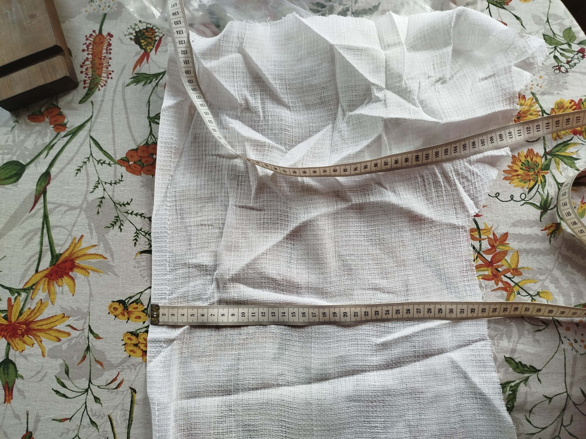 Заявлено 35см, на деле 33см. На выдаче такое не проверишь, да и ткань щупать не дают. Либо бери так, либо отказ. А вещь невозвратная. Ну я не стала разворачивать дальше, т.к. помимо нехватки длины (а на 10м это, простите, почти погонный метр ткани!), еще оказалось, что это не вафельное полотно, а марлевое! Написала продавцу, мол так и так, че за фигня. Мне естественно отказ.
