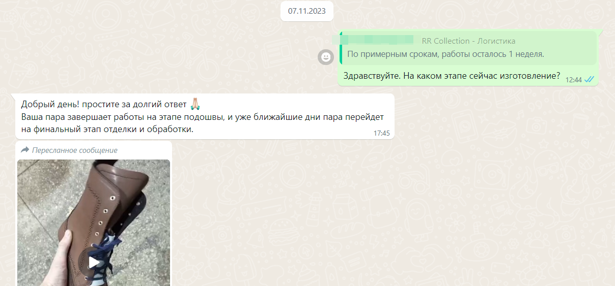 Далее я снова пишу. Уже 7.11. Подошву все еще не доделали. Прикладывают видео.