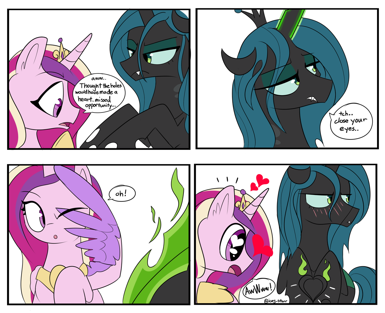 29 Runoi My Little Pony Оууу, из этих отверстий, наверно, можно сложить сердечко... 4 года назад Закрой глаза My Little Pony Princess Cadance Queen Chrysalis Комиксы Icey 1 Ещё 0