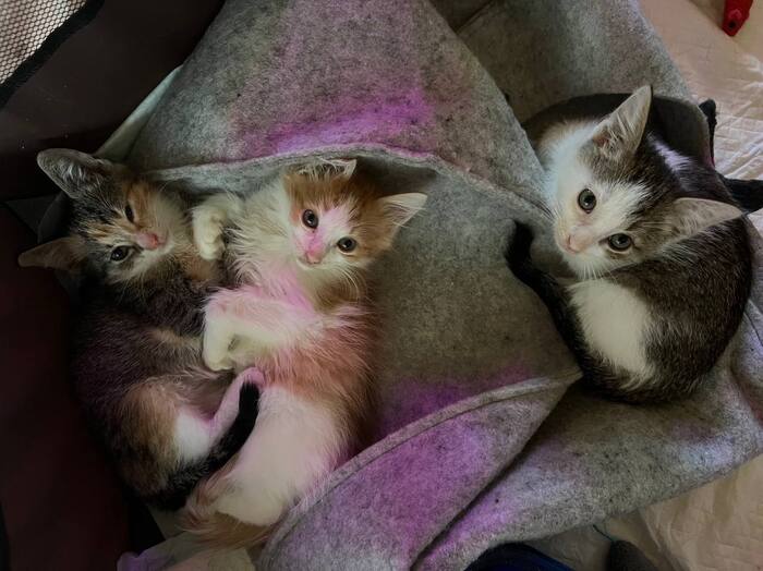 Всем привет. Новости такие. Магнум уже начал лизать котят, а котята перестали (почти) его лупить. В воскресенье двое едут в новый дом. Катышку пока я дом не нашла, ищу. Переживаю за Магнума, как он переживет то, что котята уедут. Надеюсь, что все будет хорошо.