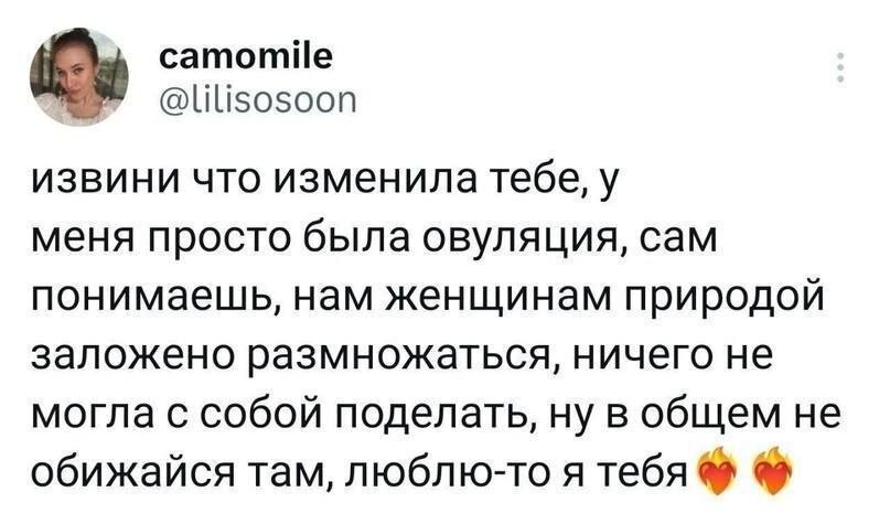 1880 Sch.Warz Юмор для всех и каждого Овуляция 3 месяца назад X (Twitter) Скриншот Измена Повтор Овуляция Любовь Извинение Война полов Странный юмор 388 63 21 5 3 2 1 1 1 1 Ещё 5