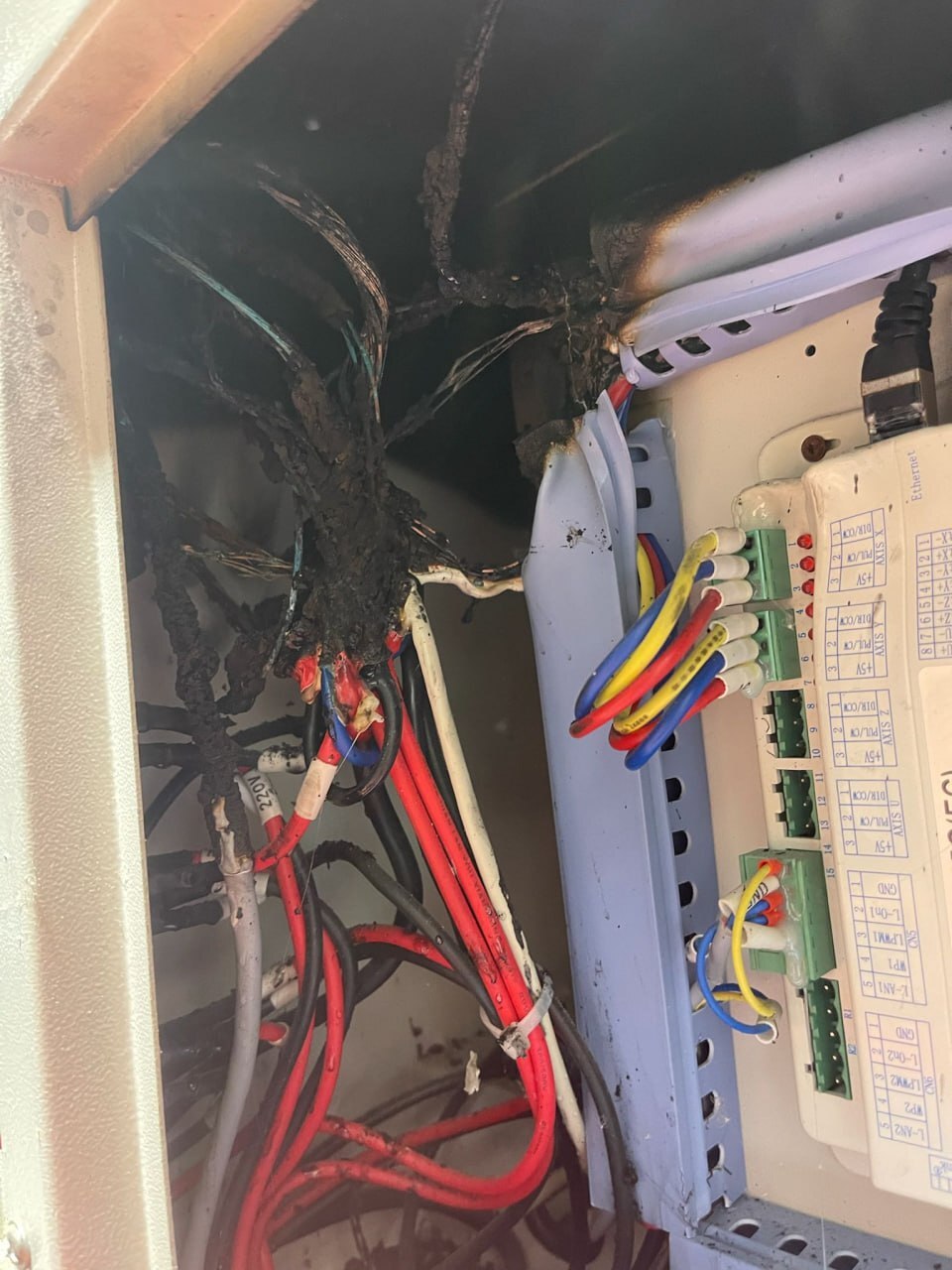 Стоим мы, значит, с новеньким (назовём его Серёжа) на перекуре. И он делится со мной лайфхаком))). Говорит : " А чё вы крышкой на СО2шниках не пользуетесь. Отличная же вещь, особенно, когда какую-то химоту режешь. Поставил на поток, закрыл крышку и не дышишь гарью. Я говорю :" Крышка, конечно, хороша, когда ты рядом находишься со станком, режешь там фанерку медленно себе и периодически проверяешь станок, тогда не страшно. А если ещё внутренняя система вентиляции есть, то вообще супер. Но у нас то станки -старички не так хорошо вытягиваю дым, вот я и не закрываю крышку от греха. А то мало ли кто-то захочет резину или ткань какую порезать закрыв крышку". И что вы думаете я слышу в ответ??. Слышу :" ой..". У меня глаза по пять копеек, мы бежим к станку. Ну и красота! По классике внутри пожар, материал сгорел, поплавился станок, проводка загорелась. В общем, ещё чуть-чуть и он полностью загорелся бы. Парниша цел, не прибили)) Но урок он хороший получил, особенно по кошельку.