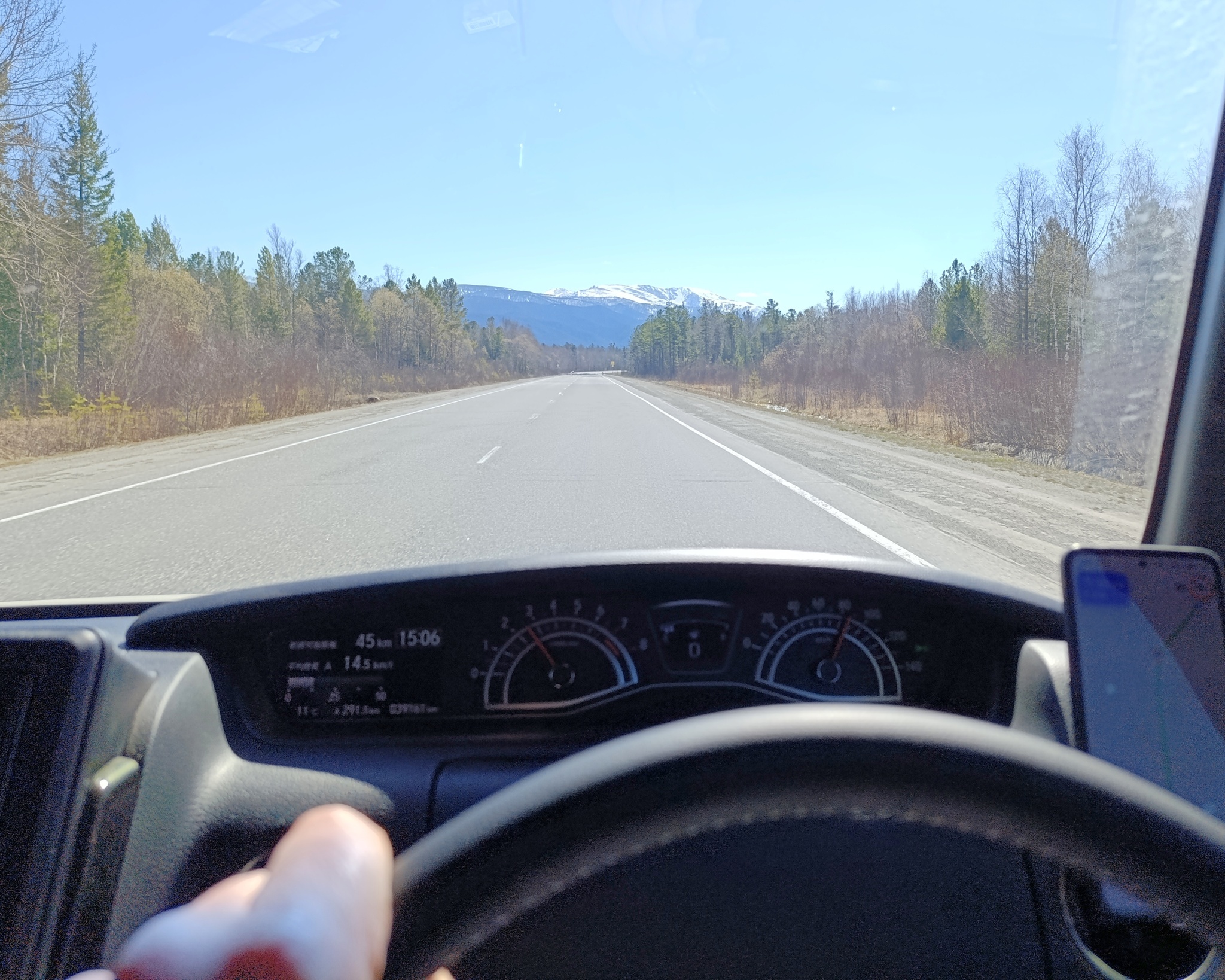 За 200 километров, я останавливался ещё несколько раз. И заправляться и кушать и просто посмотреть вокруг. А ещё, бессовестно спёр в лесу 2 маленьких кедра и 2 пихты. Я живу в своём доме, и мне ужасно хотелось посадить их у себя, на память. Сейчас у они уже прижились, а пихта попёрла в рост, как не в себя.
