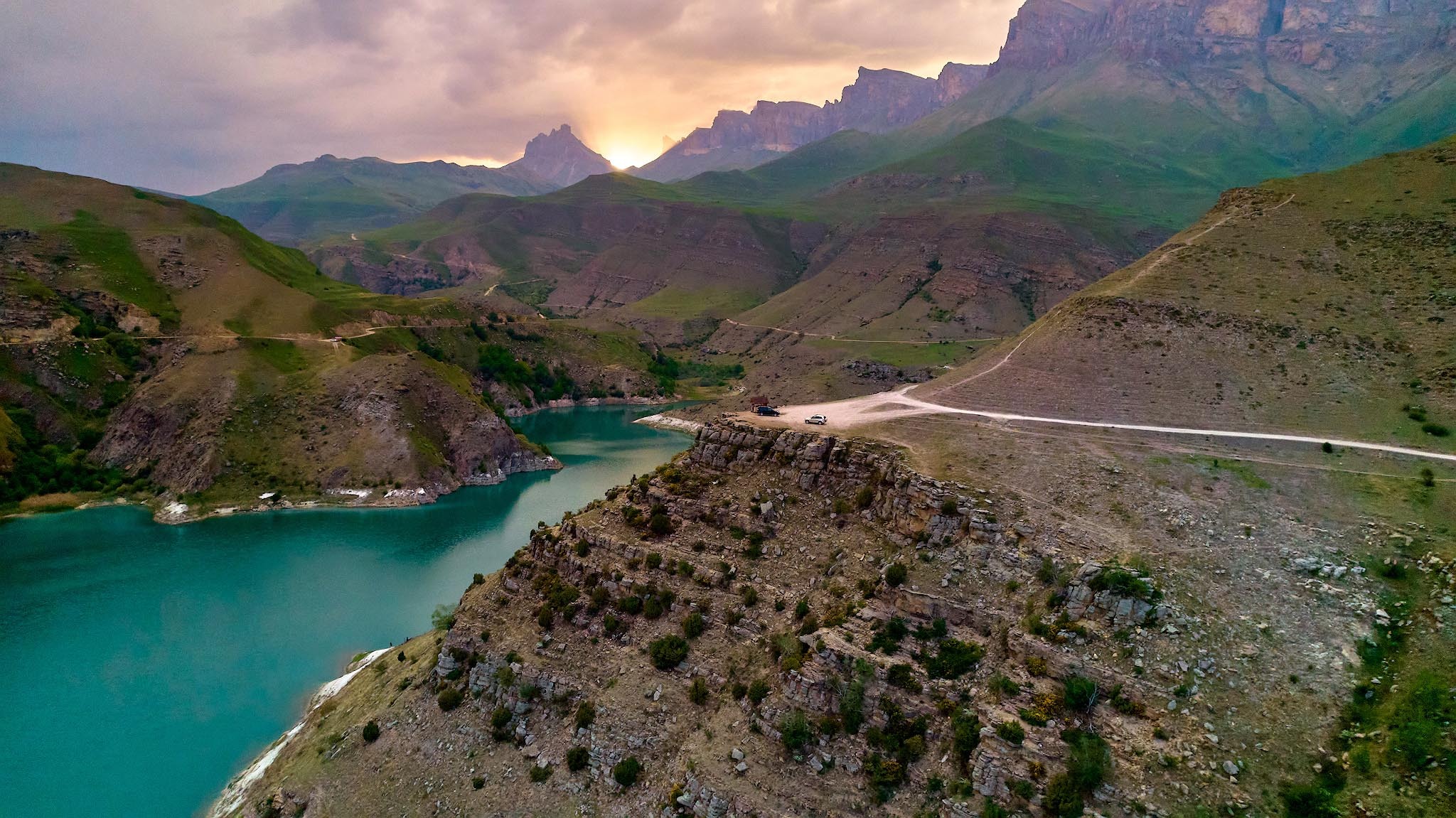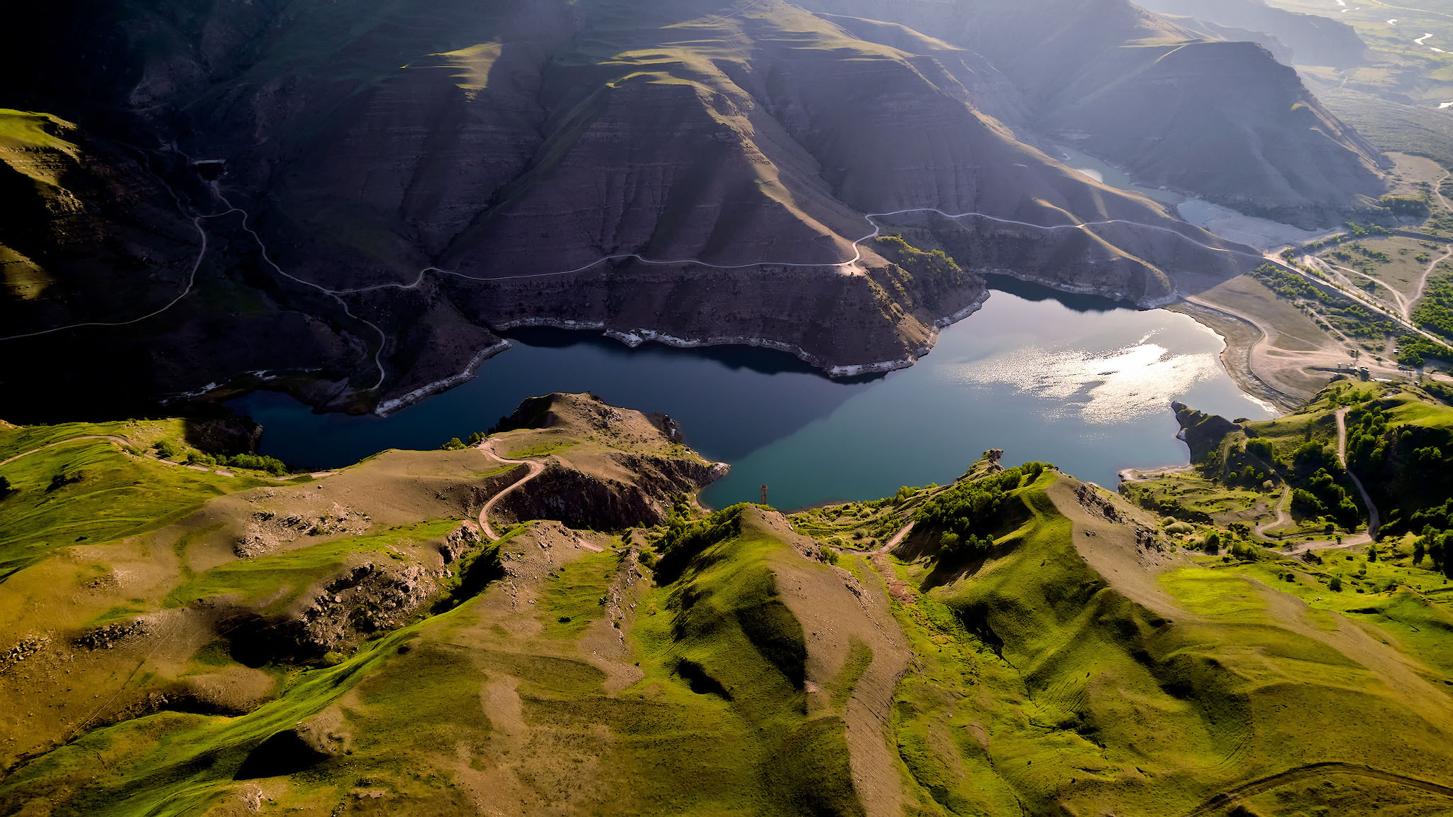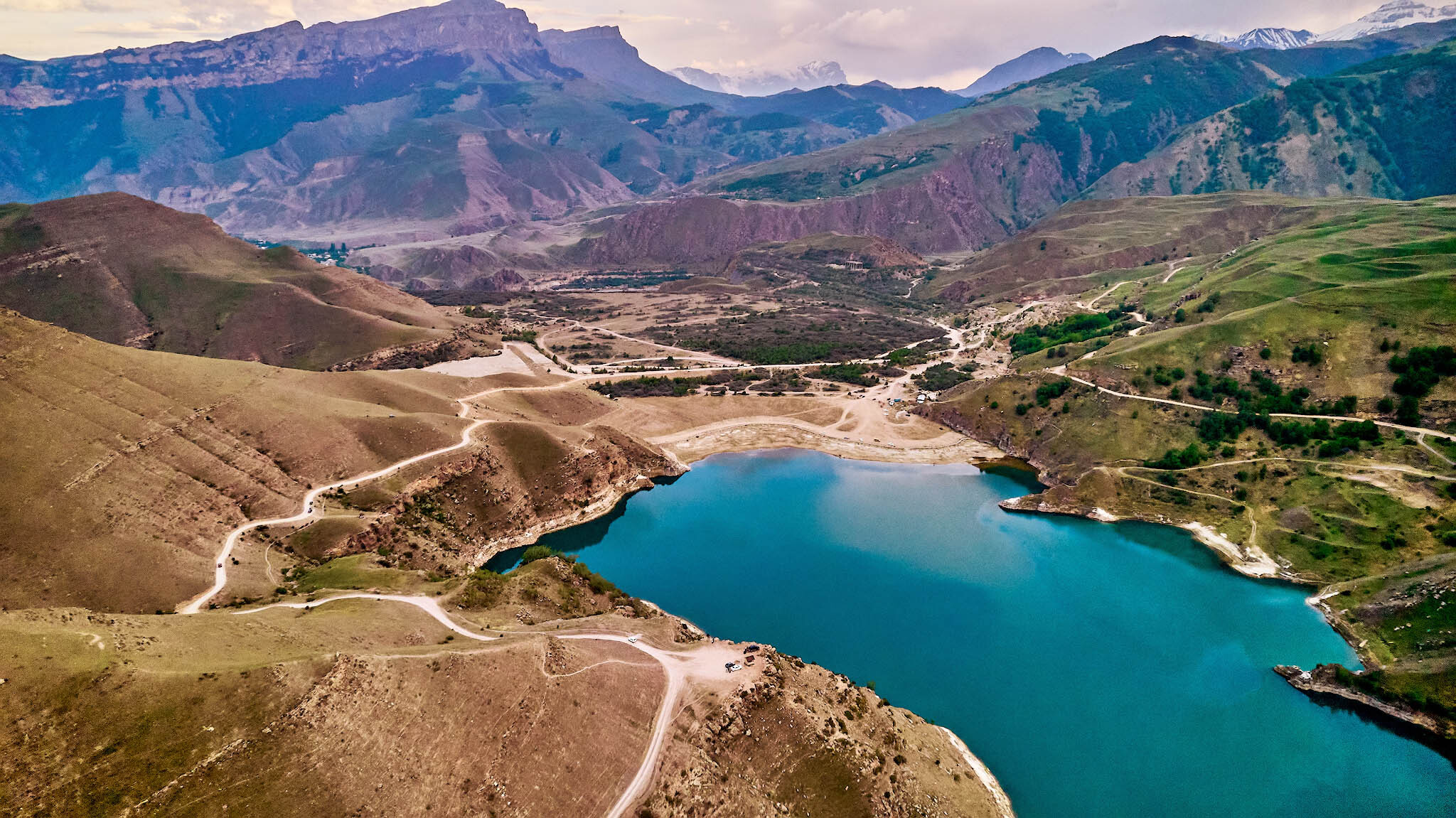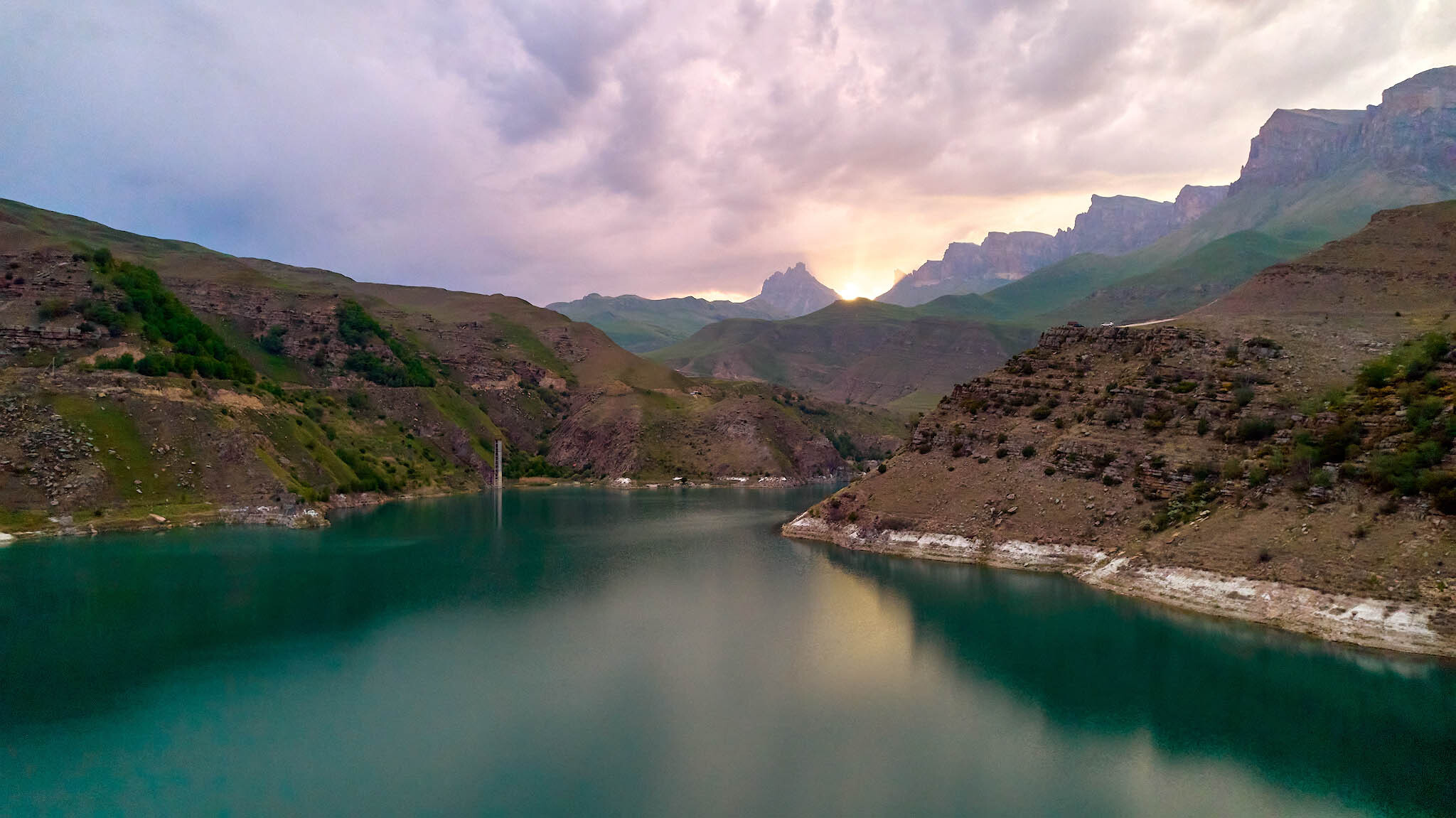 Представитье, что подобную красоту создала не природа, а человек: много лет назад в этом районе была перекрыта плотиной река Гижгит и создано... нет, не озеро Гижгит, как его сейчас называют, а хвостохранилище - накопитель промышленных отходов Тырныаузского вольфрамо-молибденового комбината.