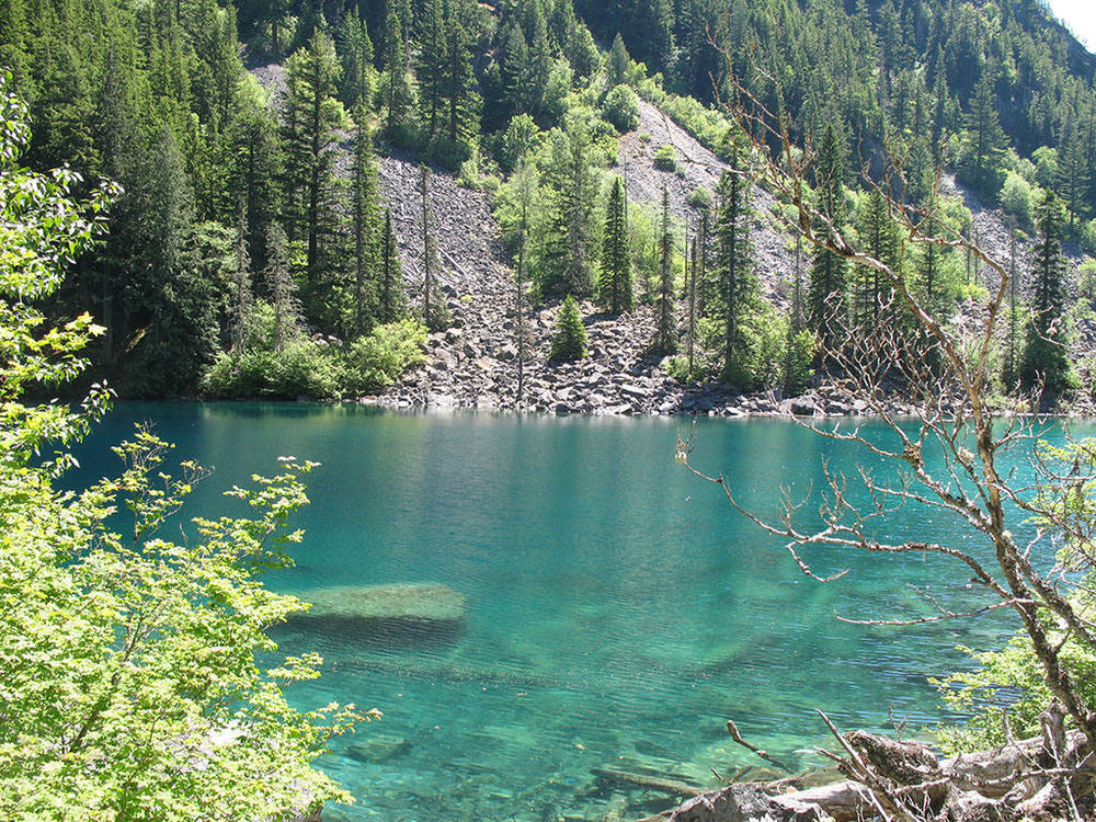 Вообще это озеро интересное, оно с разных углов по-разному переливается. Иногда кажется больше зеленым, если солнца меньше, то больше синим.
