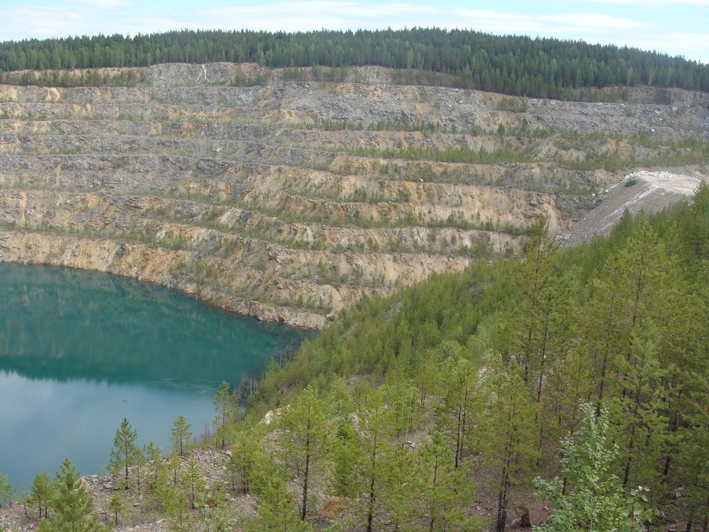 2010 год, карьер у посёлка Новая Черемшанка, Челябинская область. Цвет воды даёт примесь медного купороса в воде.