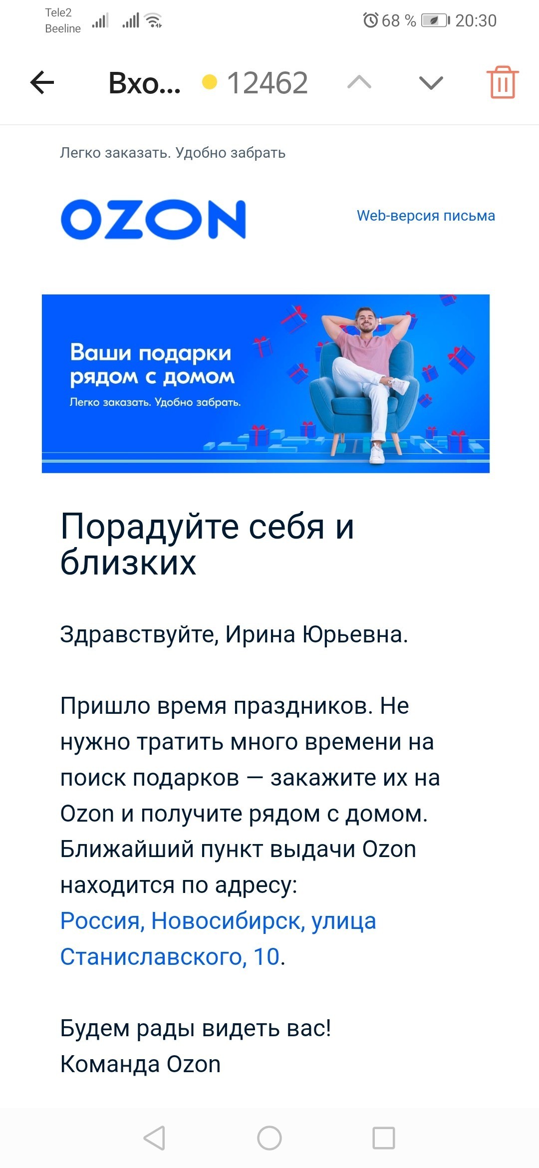 Так вот, не считая мелких неурядиц, которые происходили так или иначе в нашем сотрудничестве с ОЗОН, в этом году 15.02, в мой день рождения, ОЗОН решил удалить мою страницу, перед чем не забыв, "подарить" 500 баллов, которыми воспользоваться мне так и не удалось. Почему это произошло?! Загадка! Если учесть то, что в настоящий момент у меня 12 невыкупленных заказов, движение по которым я даже не могу теперь отследить!