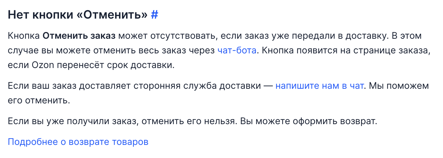 Окей, что ж, пойду в чат-бота, написал ему, но он выдал мне что отменить заказ нельзя