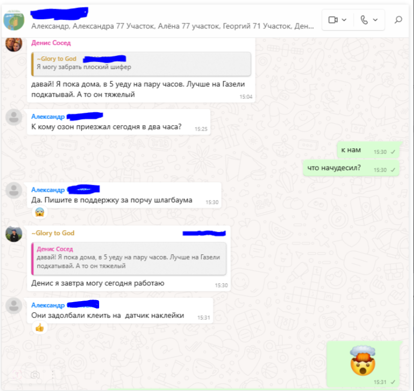 Вижу, что на доставку будет курьер Юрий, который уже неоднократно куролесил: отказывался возить заказы в выходные, ломал нам в посёлке шлагбаум. Обо всём этом писали в поддержку, поддержка обещала, что "поговорят с этим курьером". Но безрезультатно, похоже.