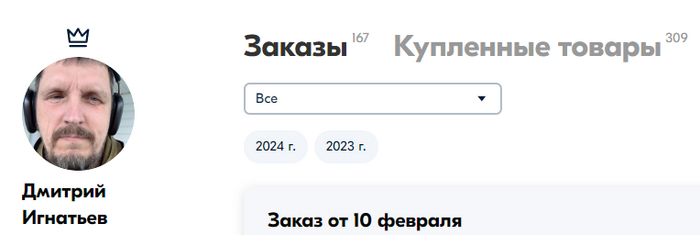 За год на Озоне я сделал 167 заказов на 309 товарных позиций. Как видно, последний заказ 10 февраля этого года.