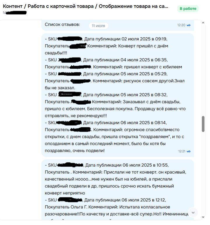 Но, вопрос у меня не закрылся, покупатели получают не тот товар который заказывали, оставляют гневные отрицательные отзывы, например: