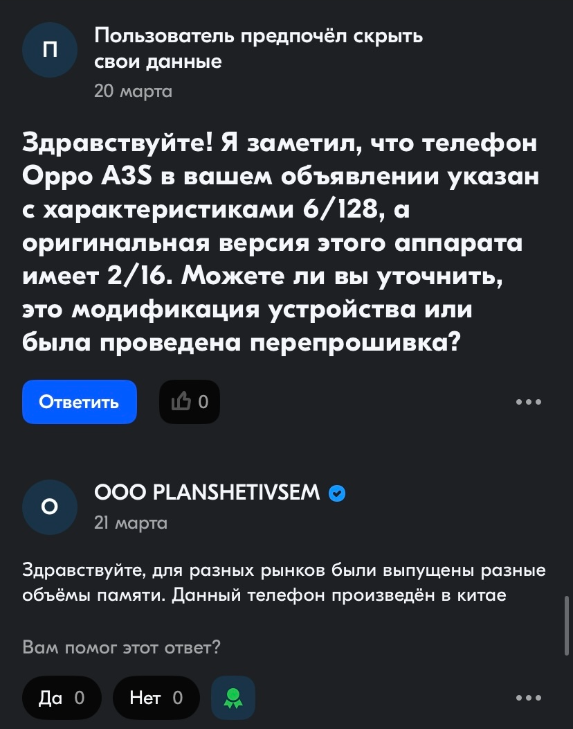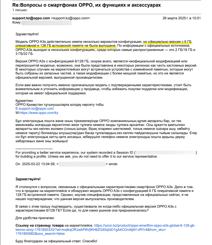 История о покупке смартфона OPPO A3s Global 6/128 ГБ, темно-синий ([ссылка]) на Ozon продолжает разворачиваться неожиданным образом..