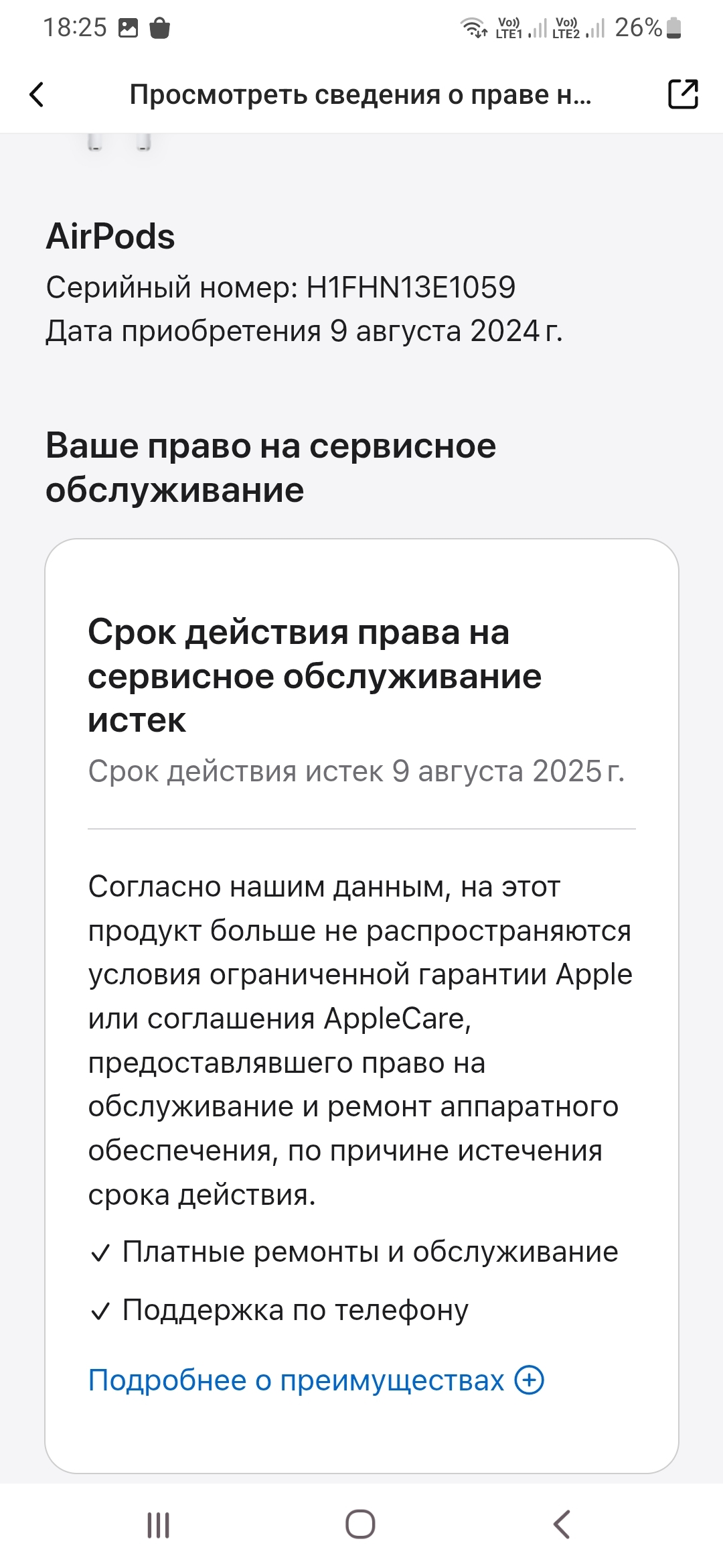 Открыв бокс, первое что бросается в глаза - крышка люфтит а серийник на сайте показывает, что это наушники, и что гарантия кончилась месяц назад. Жду вот телефона яблочного, чтоб точно проверить и убедиться, что уши левые. Откуда у нас на озоне с доставкой за пару дней (не из китая напрямую) такие вещи лезут? Что дальше делать, тоже не очень понятно. Вроде часы в подарок ребенку есть, но они точно левые, а уши так качественно подделали, что прям до расстройства. Нет бы положили обычный нонаме за 600р, вообще вопросов бы не возникло.