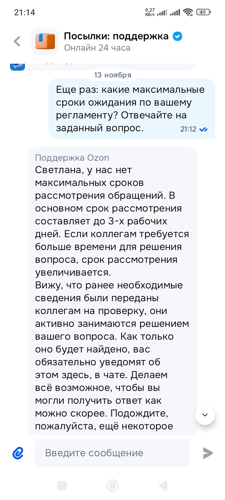 Отправили мне ботинки через озон, прихожу получать, разворачиваю и вижу милые елочные игрушки (эх, наверное, их тоже кто-то ждал) вместо ботинок. Номер посылки верный. Но видно, что даже коробка не та, которую отправитель приносил - он сфоткал и коробку, и вложение. Да и в пункте приема сотрудник сфоткал вложение. Короче, в моем пункте сотрудник поохала, что-то там "внесла в систему" , я получать это отказалась, ну и по их правилам посылка ушла назад в пункт, из которого пришла. Я в чате написала, мне сказали, ждите, примерно в течение 3 рабочих дней порешаем. Прошло уже больше 17 дней календарных, но воз и ныне там. Мне отвечают, что у них даже максимальных сроков рассмотрения нет. Ждите, и всё. Сегодня пришло уведомление, что завтра посылку утилизируют, как не полученную. Причем, у меня в приложении нигде и никак не видно, сто посылка пришла чужая. Просто посылка "ожидает в пункте получения". Фото сложения - мои ботинки. Нигде елоигрушки не фигурируют. По их договору не пришедшая в течение 30 дней посылка считается утерянной. Причем, по тх же правилам я должна в приложении в посылке нажать на кнопку"претензии " и отправить им ее. Но у меня в моей посылке такой кнопки нет, т.е. она же не утеряна - ну просто не моя пришла. Вот так веселенько...