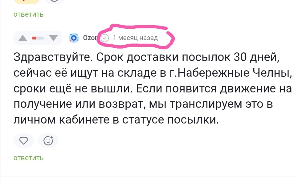 OZON посылки вопрос не решён