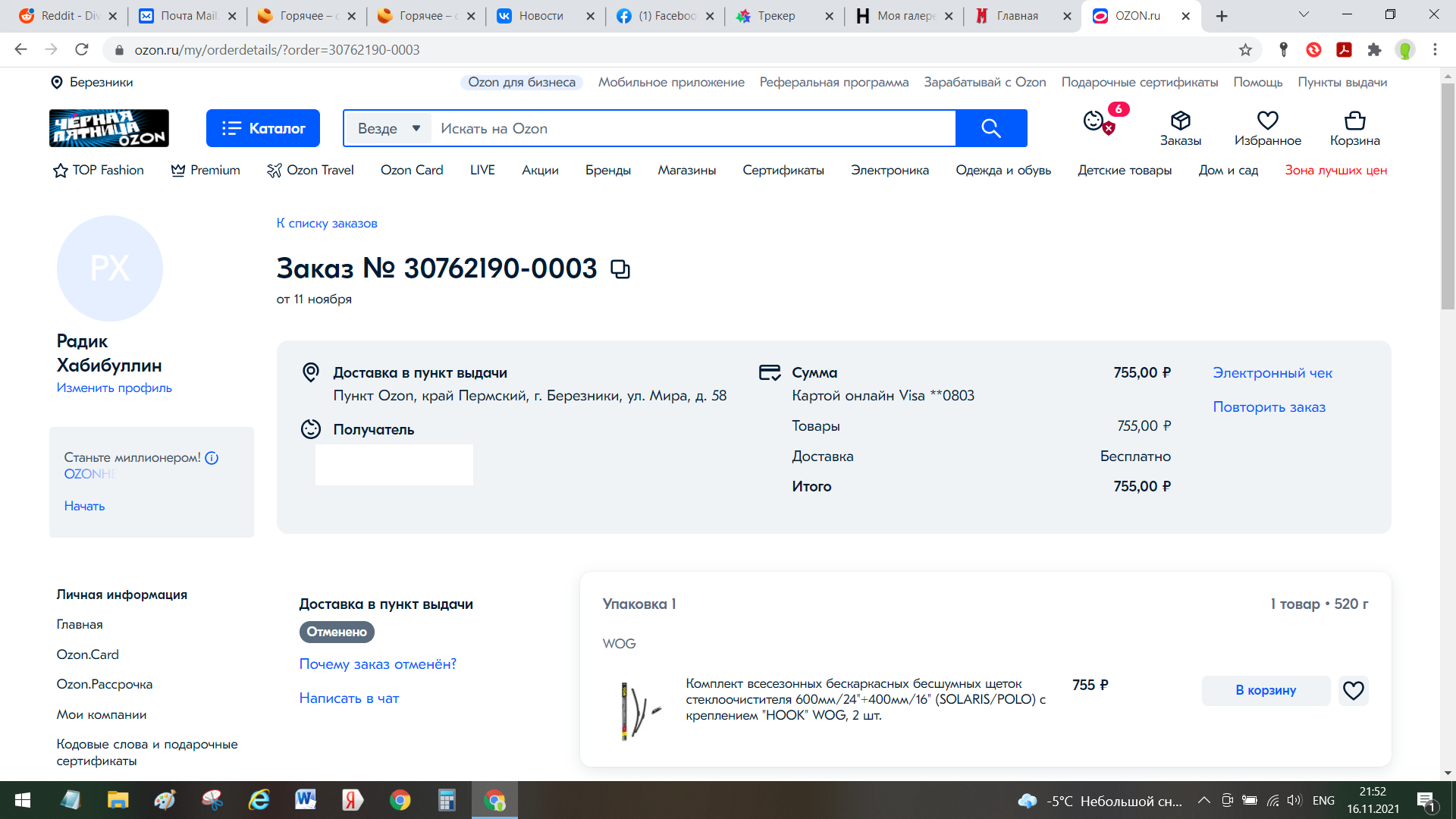 4 khabib999 OZON явно не озонирует воздух 4 года назад Заказал в Озоне щётки стеклоочистителя (чёрная пятница же!) за 755 рублей, оплатил, жду.Сегодня получаю СМС об отмене договора купли-продажи. Проверяю, эти щётки на складе имеются, только (догадайтесь?!) уже по другой цене: [моё] Черная пятница Реклама Защита прав потребителей Ещё 0