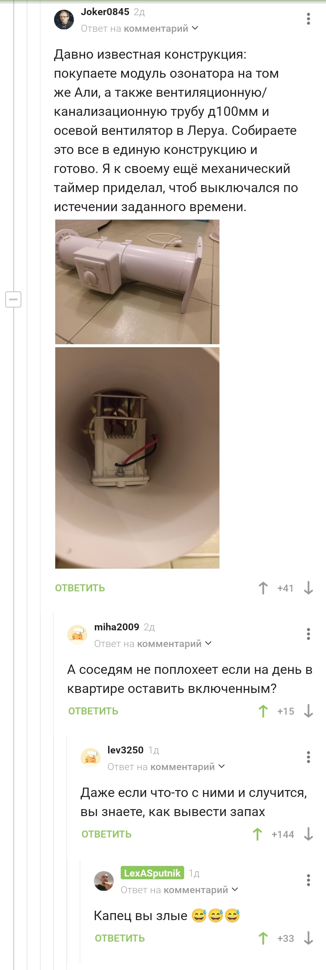 Давным давно использую озонатор с Али для очищения и обеззараживания воздуха (у меня он правда 2х модульный, т.е. выход озона ооочень большой). Тут наткнулся, что я не одинок - комменты порадовали:))