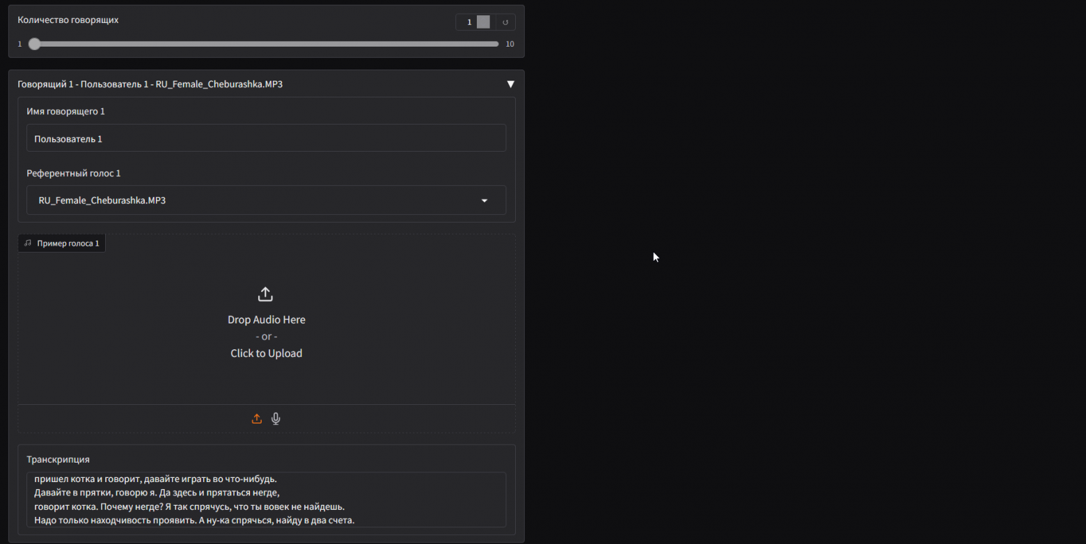 Поддержка до 10 говорящих. Идеально для одиночных реплик и сложных диалогов.