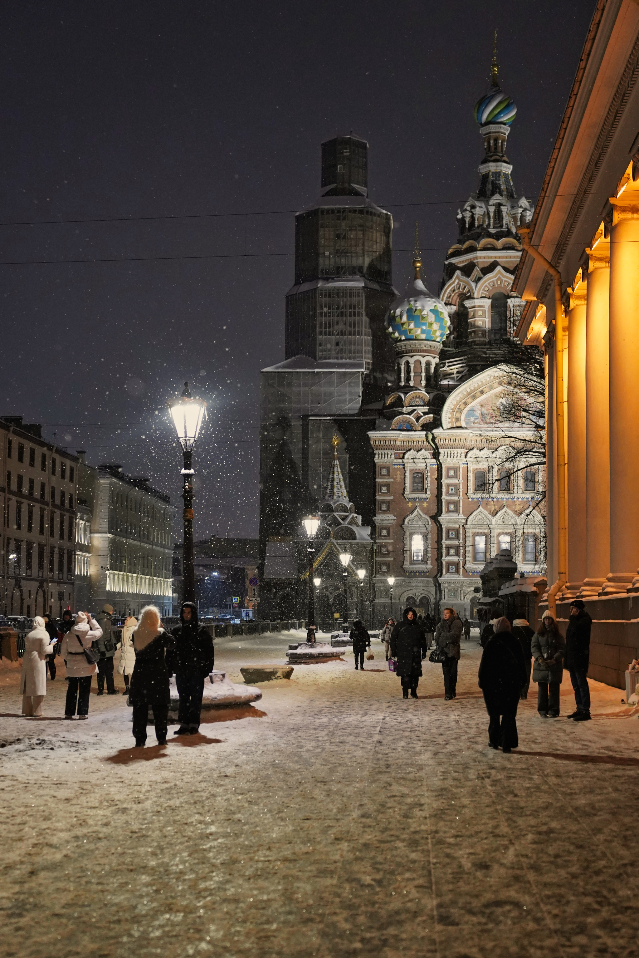 Падал и нападал. Конечно, не так как в Центральной России и Москве , но тоже было. А на фото окрестности Спаса-на-Крови: он сам, ограда Михайловского сада, Мало-Конюшенный мост с человеком и собакой и какая-то хорошая (надеюсь) девушка, разговаривавшая по телефону. Наверное, о чём-то новогоднем. Или нет.