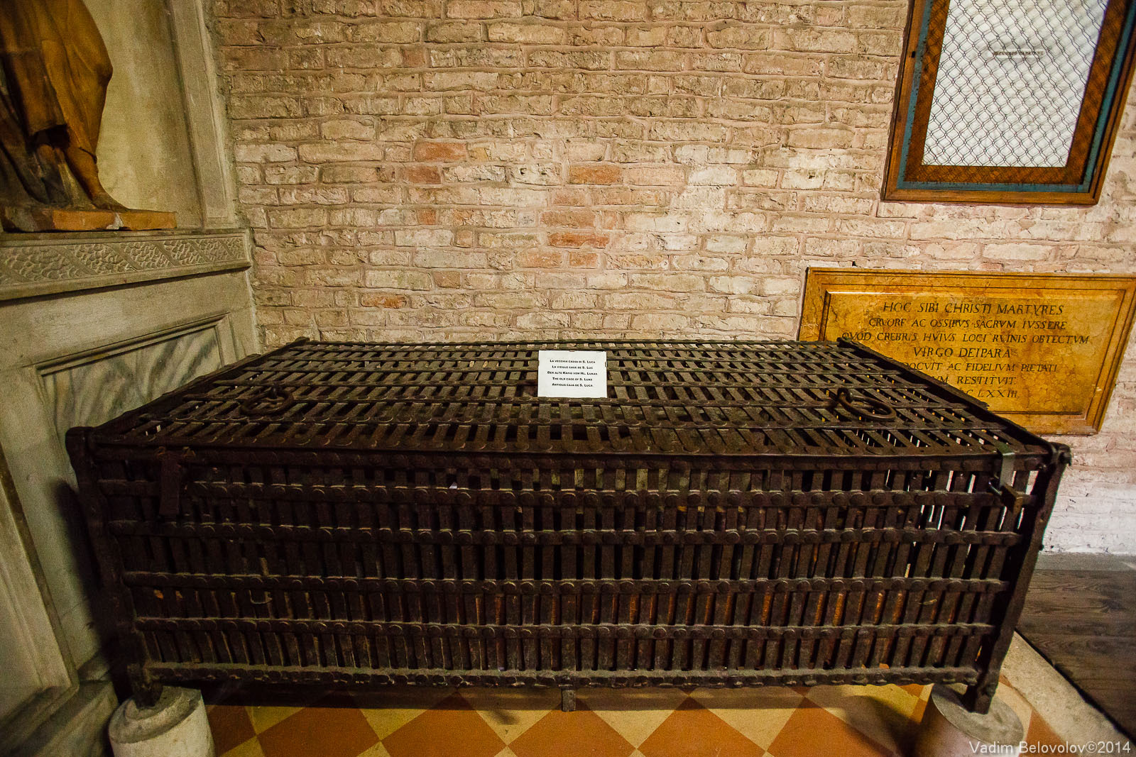 Собор построен над древним полуподземным святилищем, которое бережно сохранено. В полу есть окна, закрытые толстенным стеклом, и в них можно наблюдать часть подземной церкви. А можно пройти дальше и в одном из приделов храма спуститься вниз.