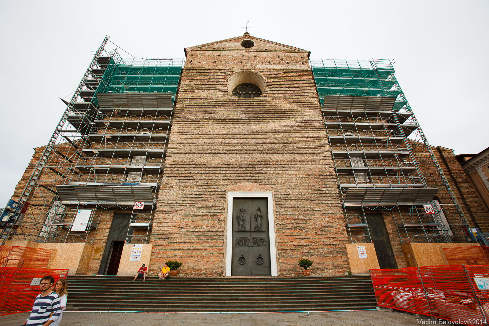 Потом пошли в базилику святого Антония, благо что она рядом, за площадью. Кстати, там прямо культ св.Антония, огромная масса всяческой сувенирки с ним, плакаты, базилика...Практически символ города. Впрочем, к чему лишний треп, давайте-ка глянем, что за этим облепленном лесами фасадом.