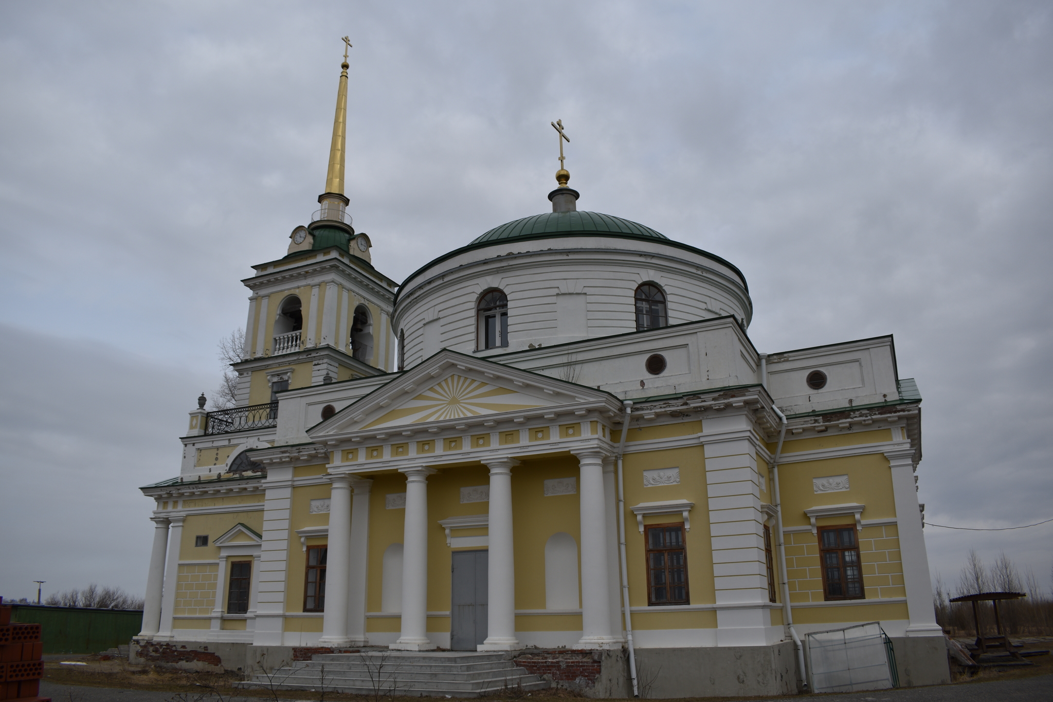 От "старого" Усолья до места около полутора километров, первой по пути - Никольская церковь, архитектор Воронихина, автора Казанского собора Санкт-Петербурга. Это его "проба пера":
