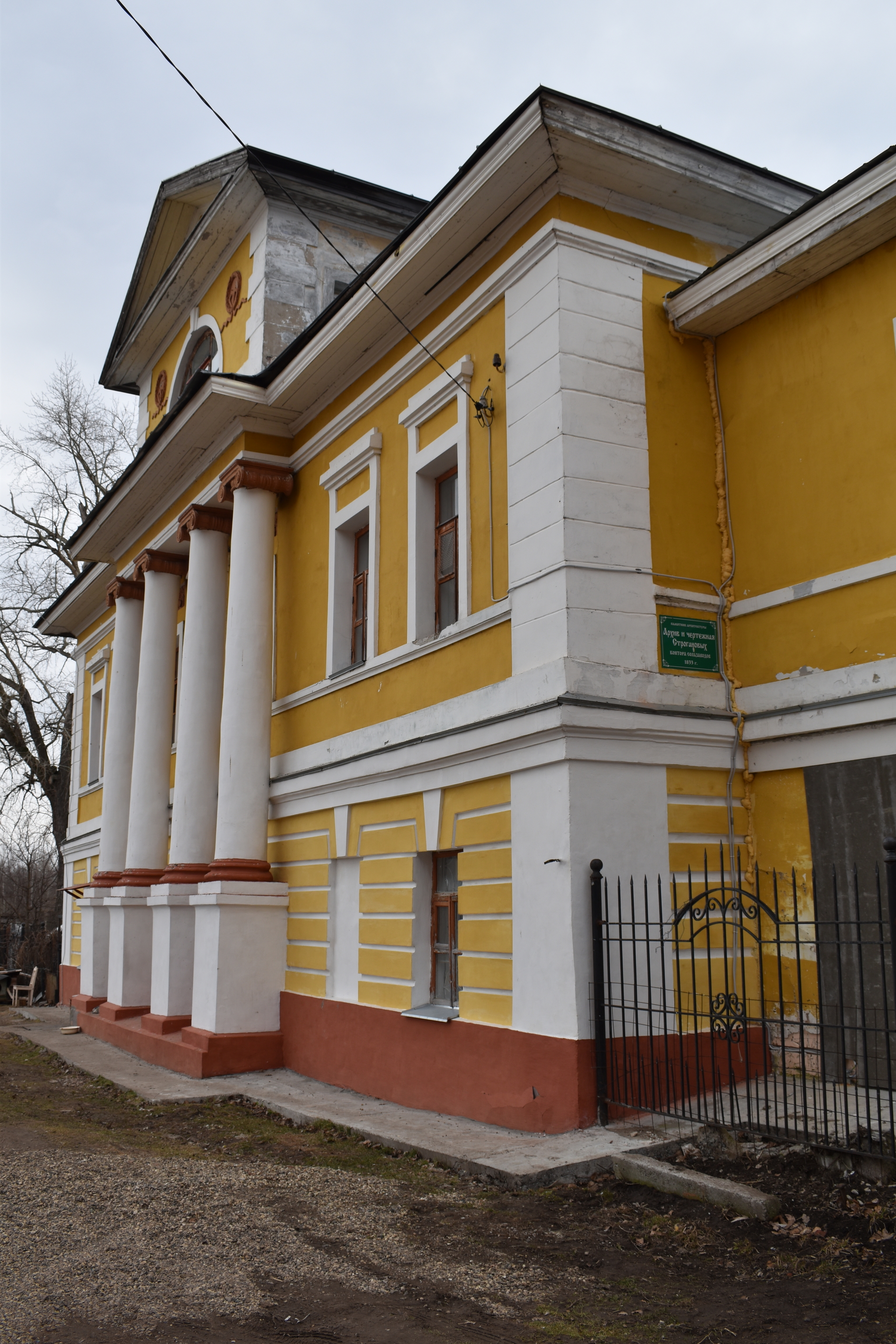 Двухэтажное здание, господский этаж, в ход в который через красное крыльцо и цоколь для прислуги. Кровля с крутыми скатами, покрыта деревом.