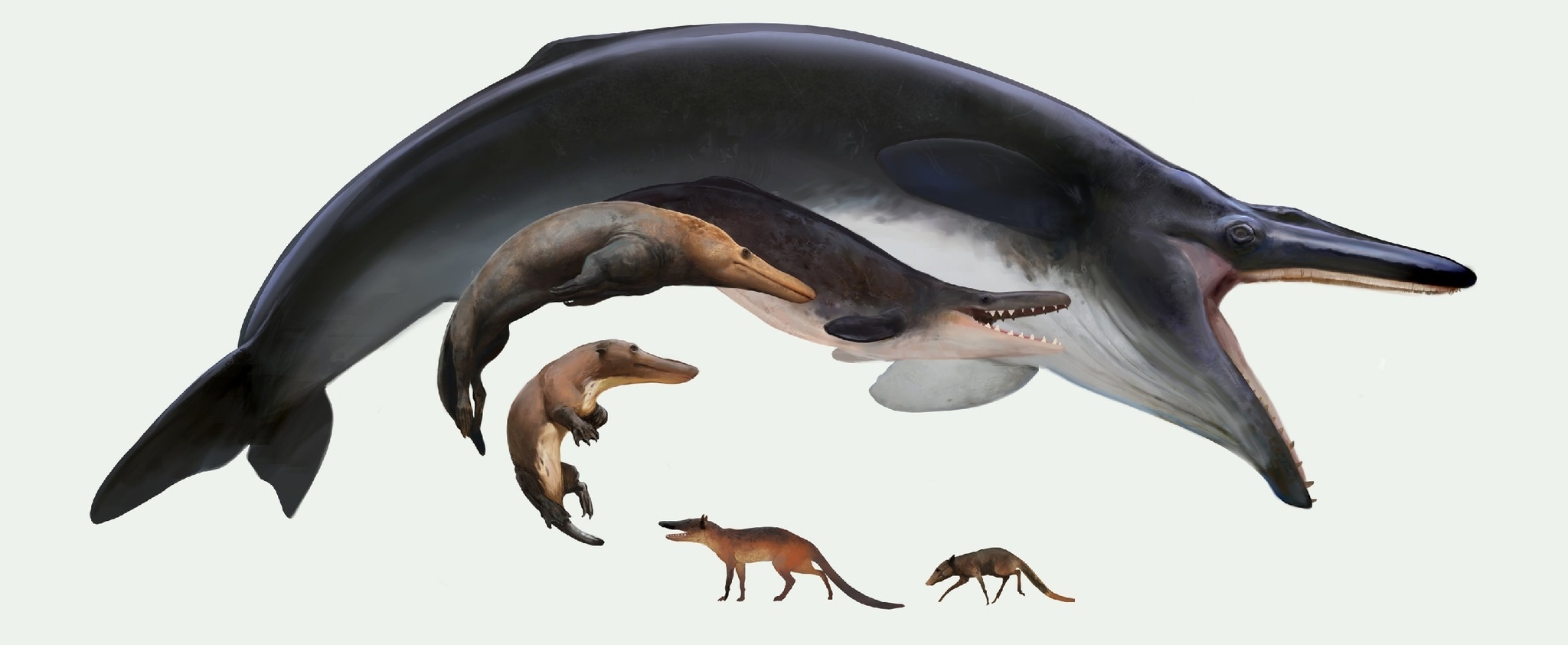 Поэтому выжили только представители группы, перешедшие в моря, где смогли добиться успеха. Из них эволюционировали киты и дельфины (строго говоря, в современной систематике более корректно название "китопарнокопытные").