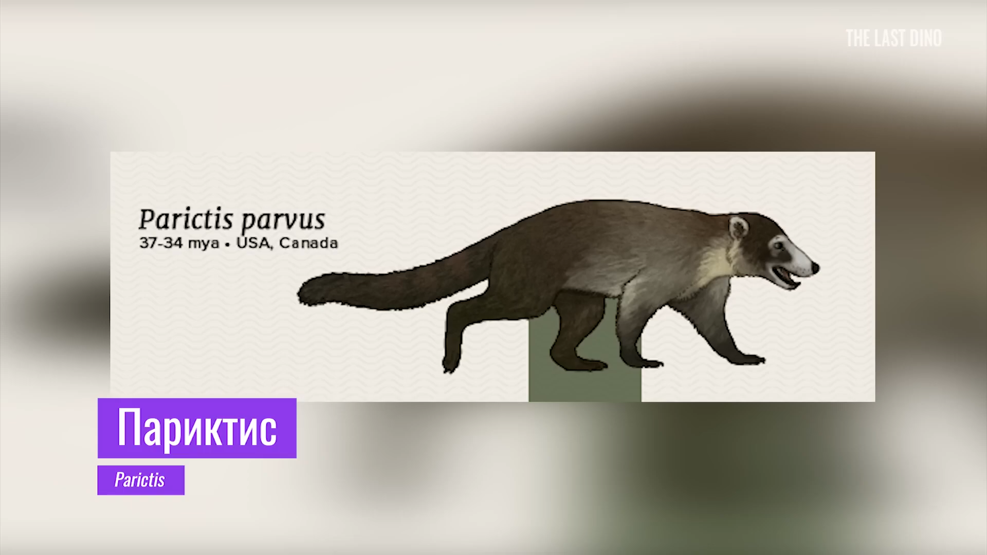 Вот это чудо похоже на енота, но является самым ранним родственником медведей. Длина черепа париктиса - всего 7 сантиметров. Он был весьма небольшим и изящным животным, что резко контрастирует с более поздними формами