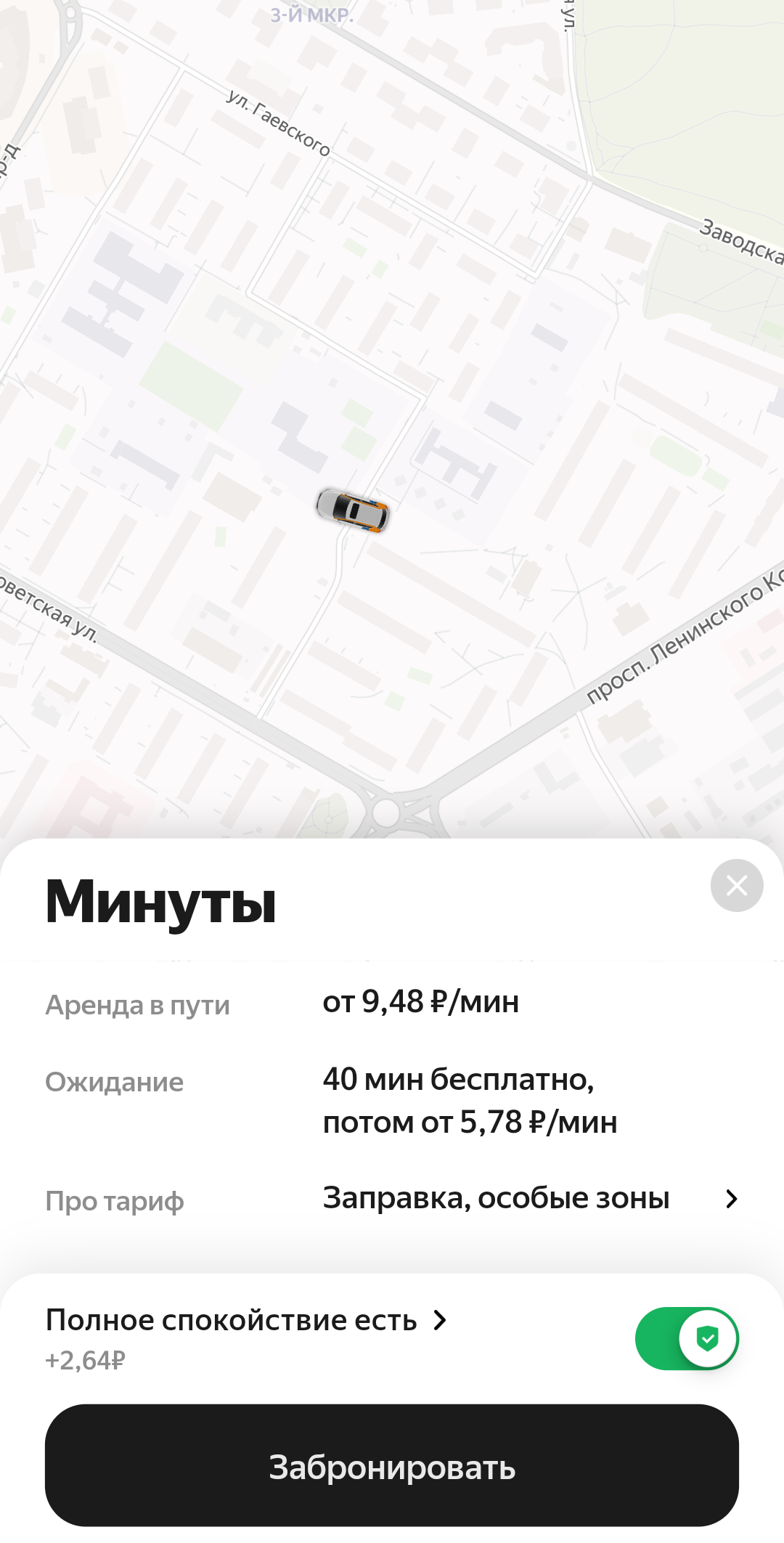Ценник был 10.62 рубля за минуту аренды. Я особо не придал значения тому, что не было выбора области завершения поездки, т.к. уже был опыт, и цена не отличалась. Однако, не в этот раз. По завершению поездки, меня удивили ценником почти в 2 раза больше ожидаемого.